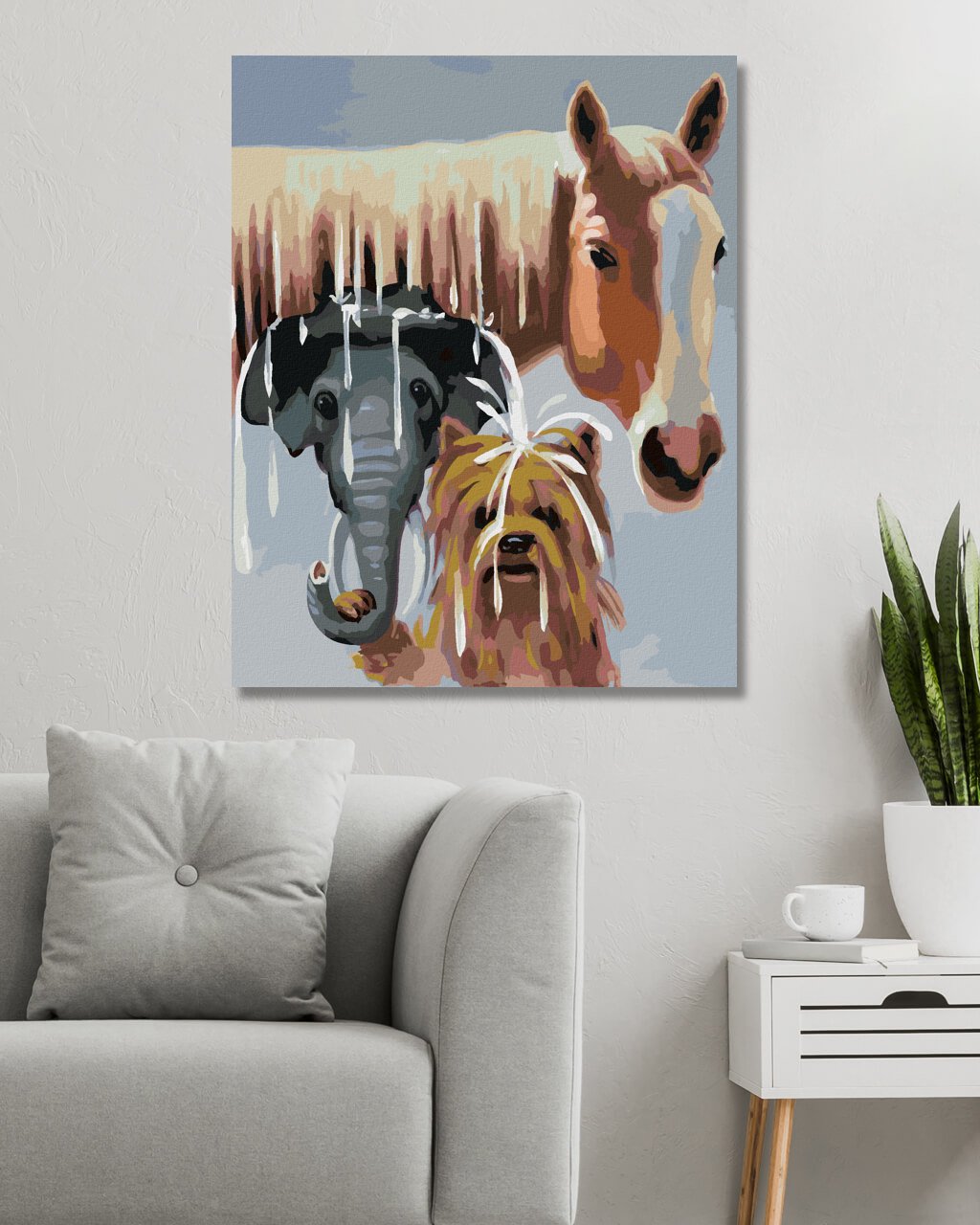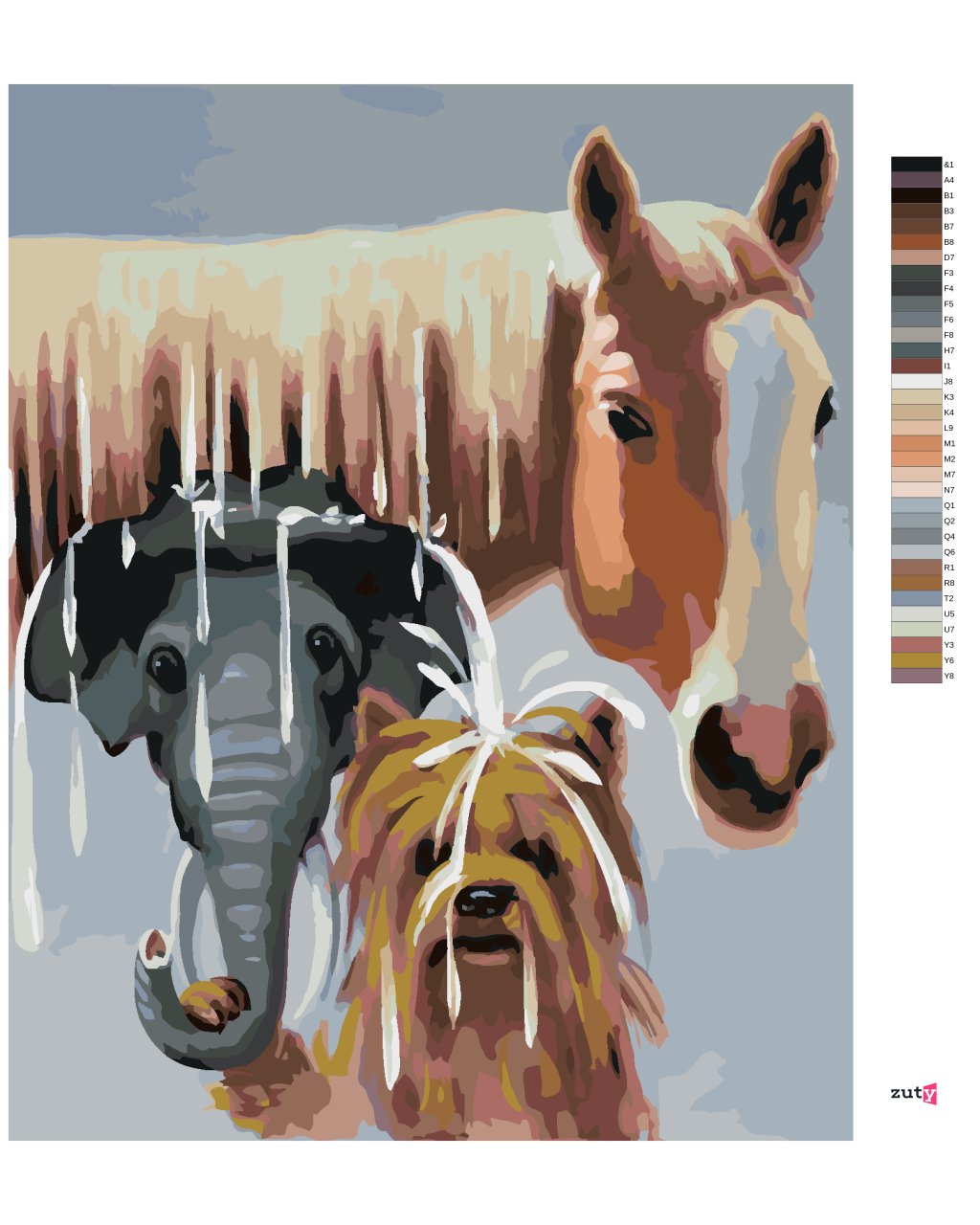 Maľovanie podľa čísel - KÔŇ, SLON A PES (D. RUSTY RUST)