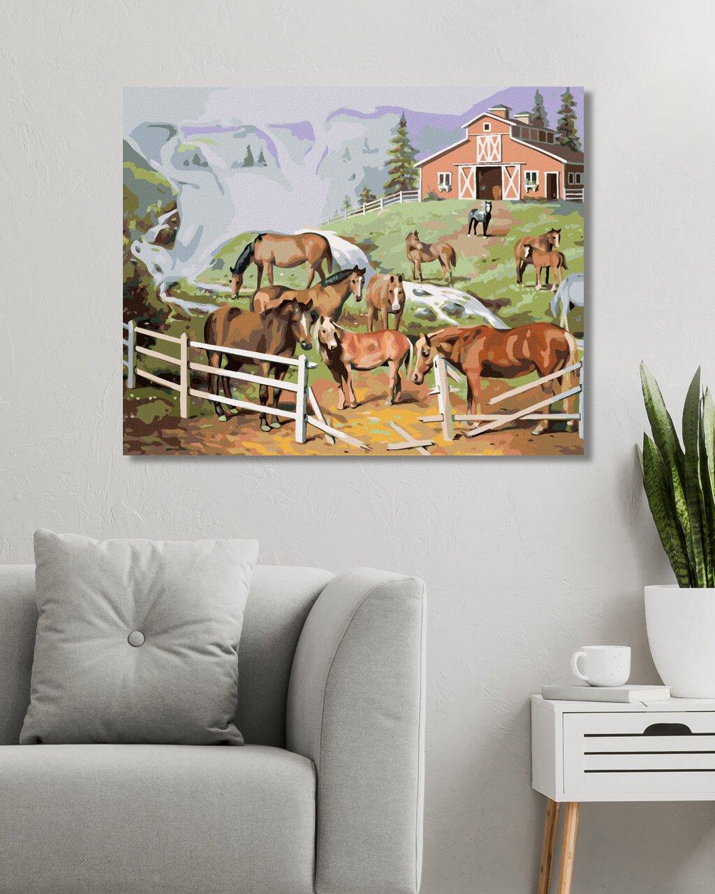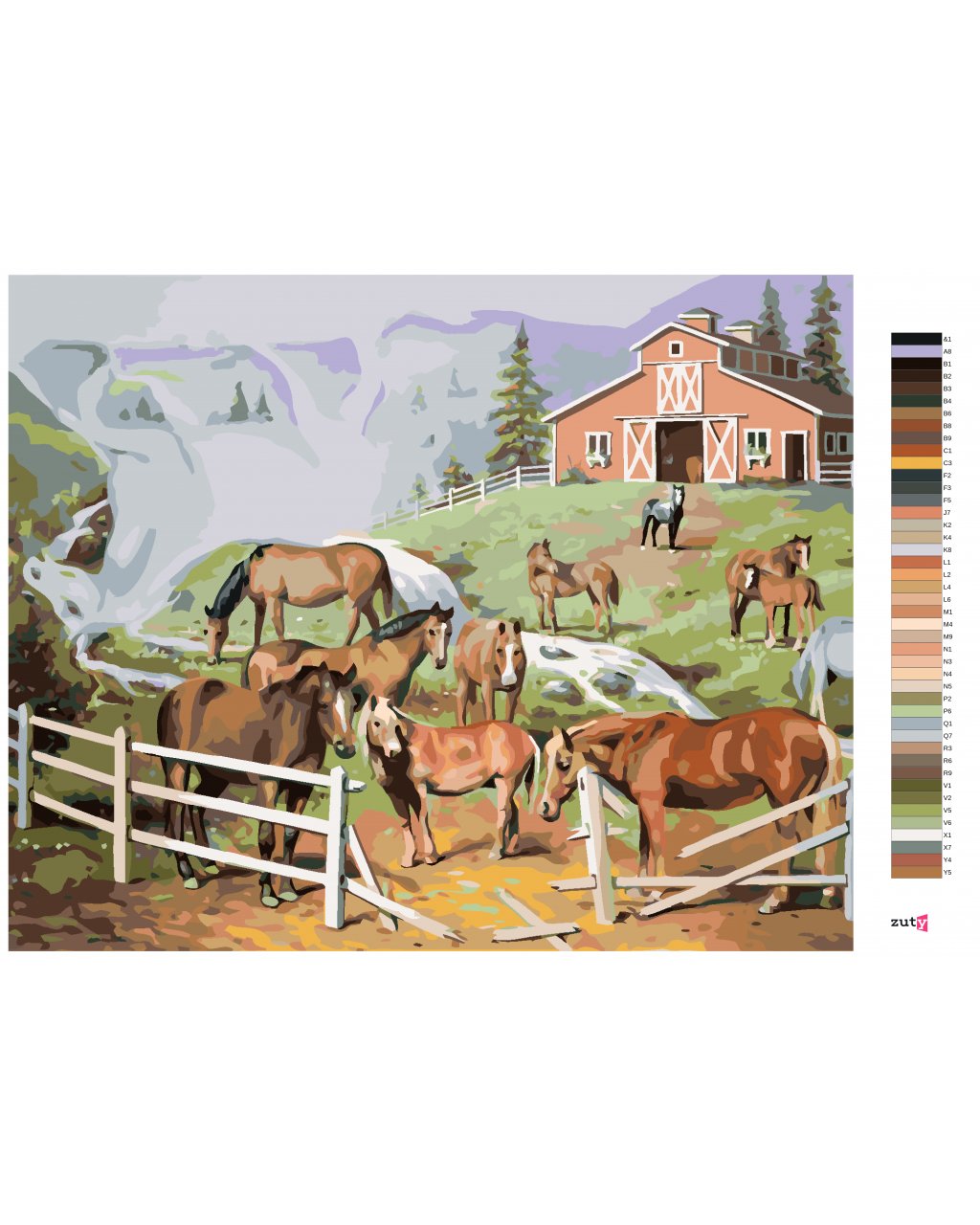 Maľovanie podľa čísel - KONE PRI ZNIČENEJ OHRADE (D. RUSTY RUST)