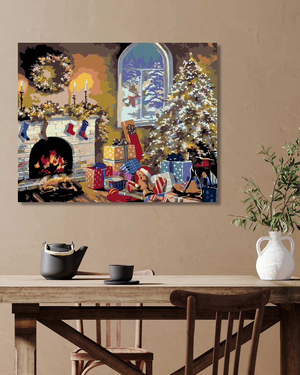 Maľovanie podľa čísel - KOZUB A VIANOČNÝ STROMČEK S DARČEKMI