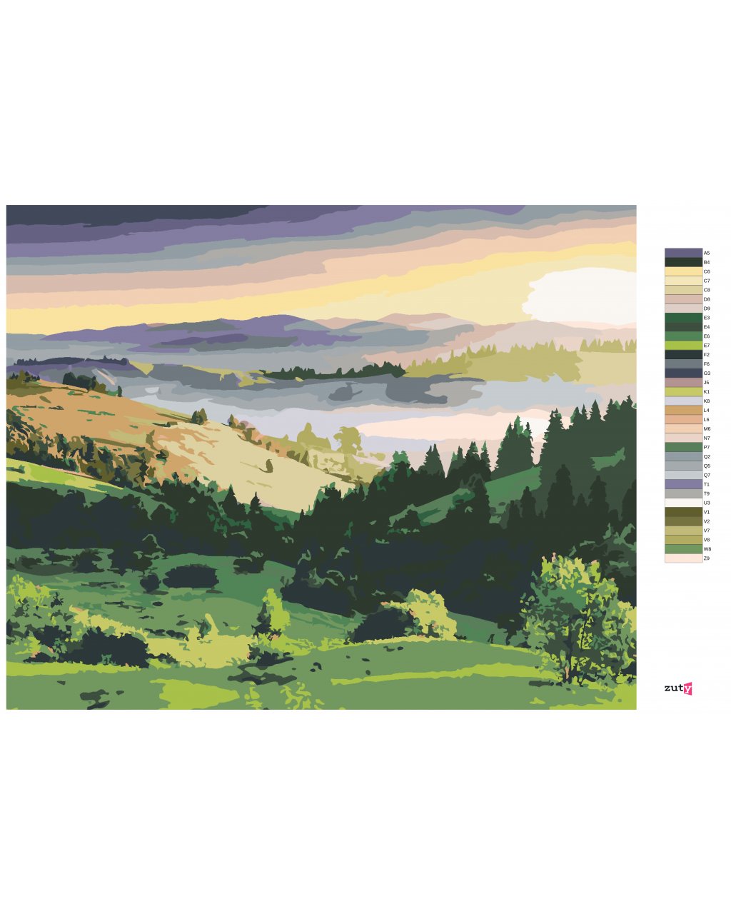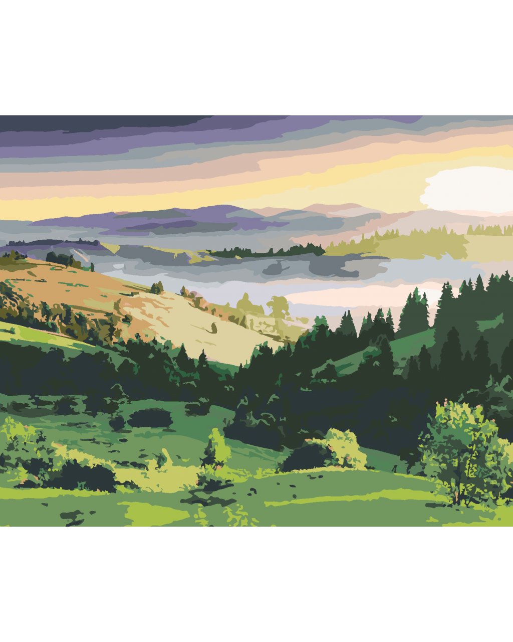 Maľovanie podľa čísel - KRAJINA KOPCE A STROMY