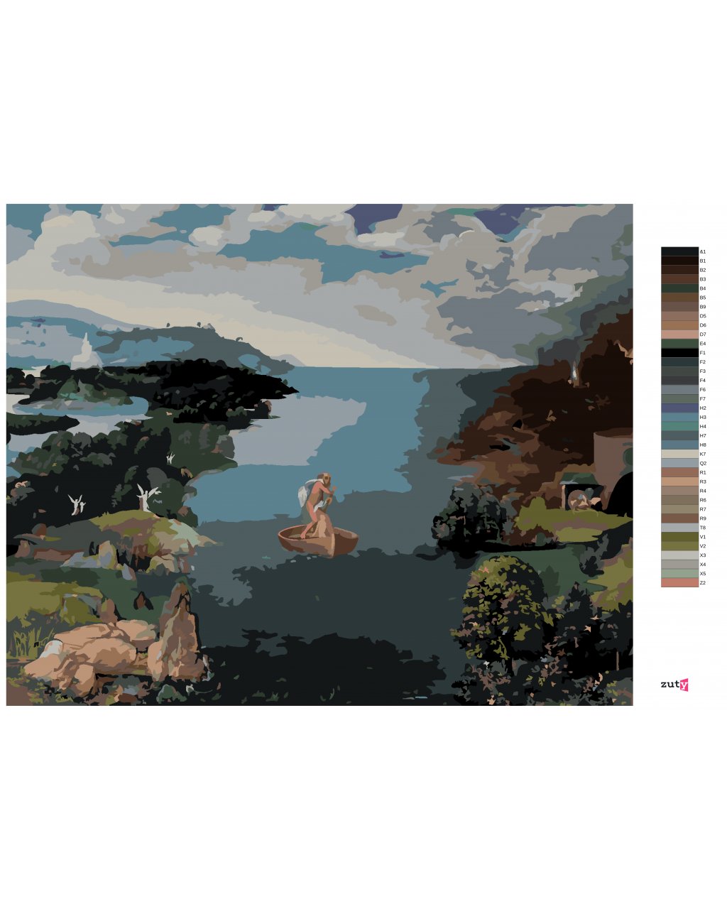 Maľovanie podľa čísel - KRAJINA S CHARÓNOM PREKRAČUJÚCIM STYX (JOACHIM PATINIR)