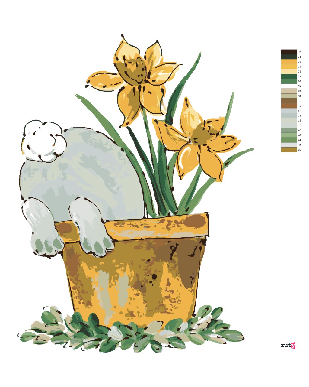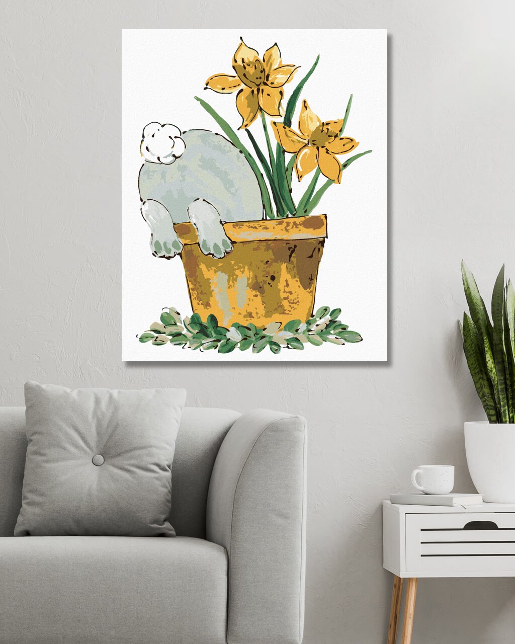 Maľovanie podľa čísel - KRÁLIK V KVETINÁČI (HALEY BUSH)