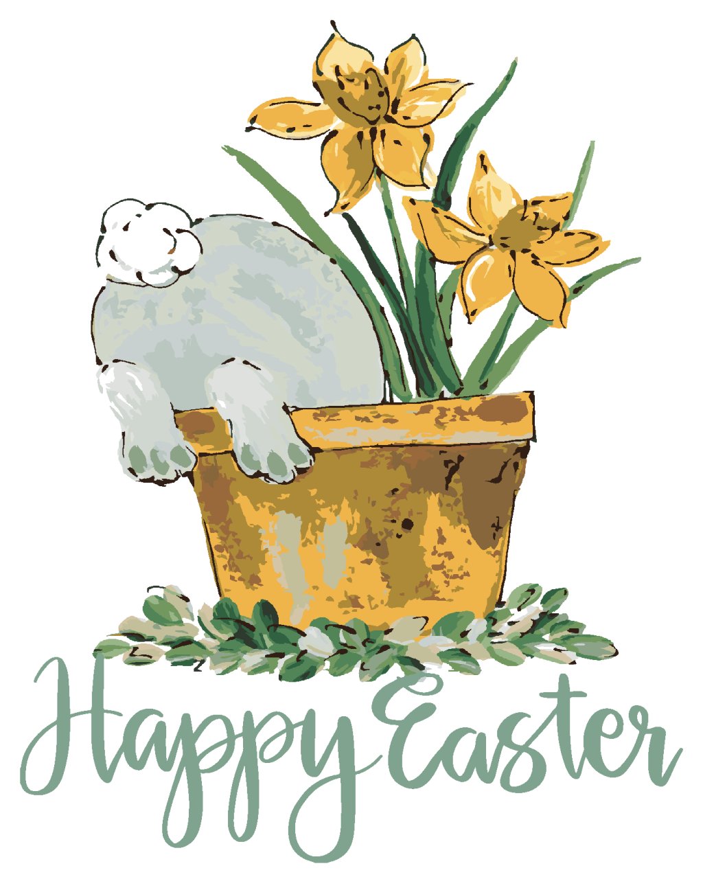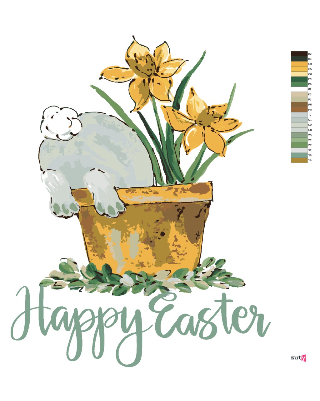 Maľovanie podľa čísel - KRÁLIK V KVETINÁČI VEĽKÁ NOC (HALEY BUSH)
