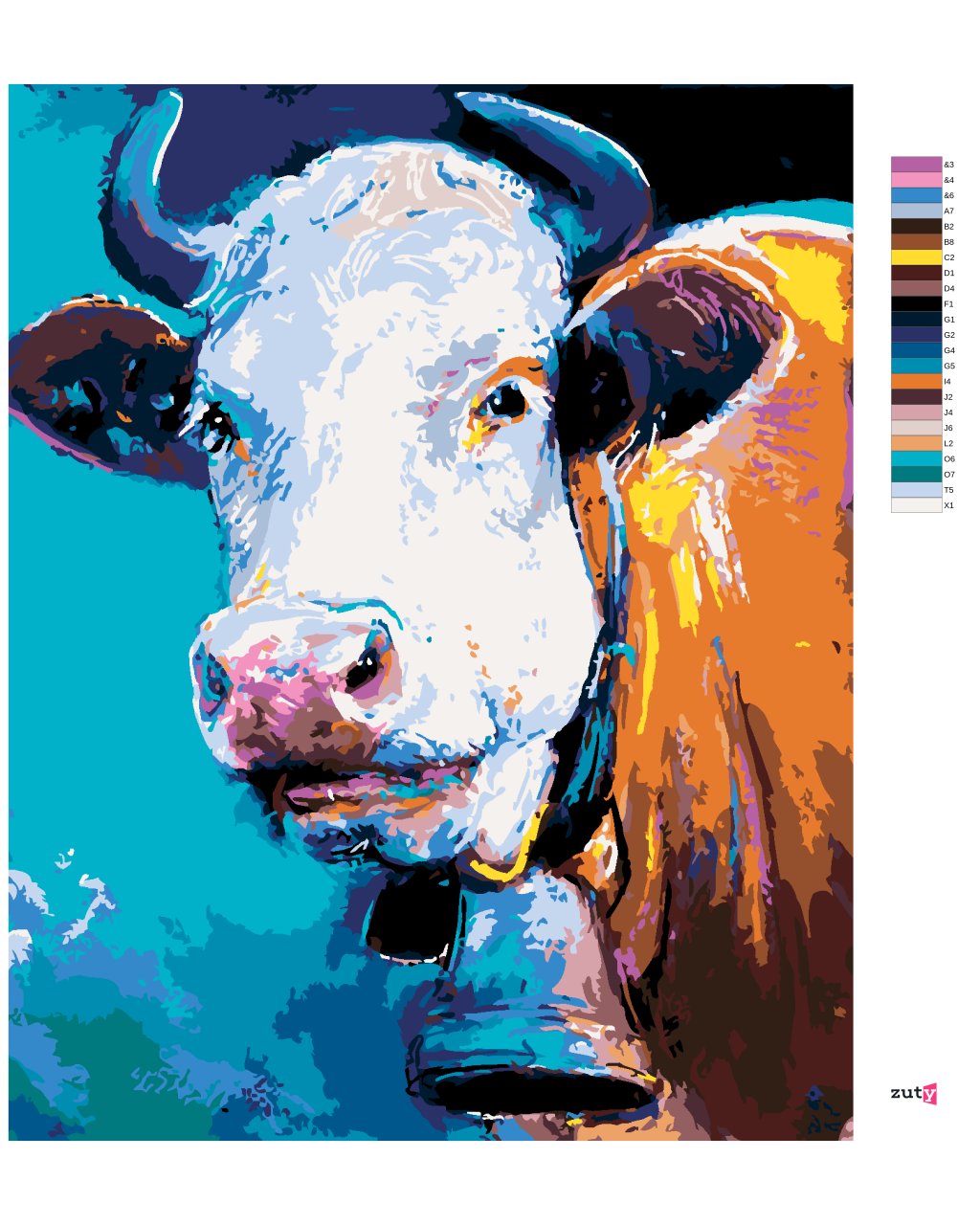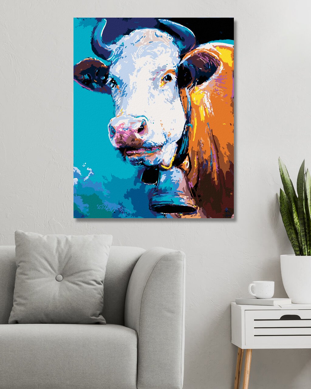 Maľovanie podľa čísel - KRAVA NA MODROM POZADÍ