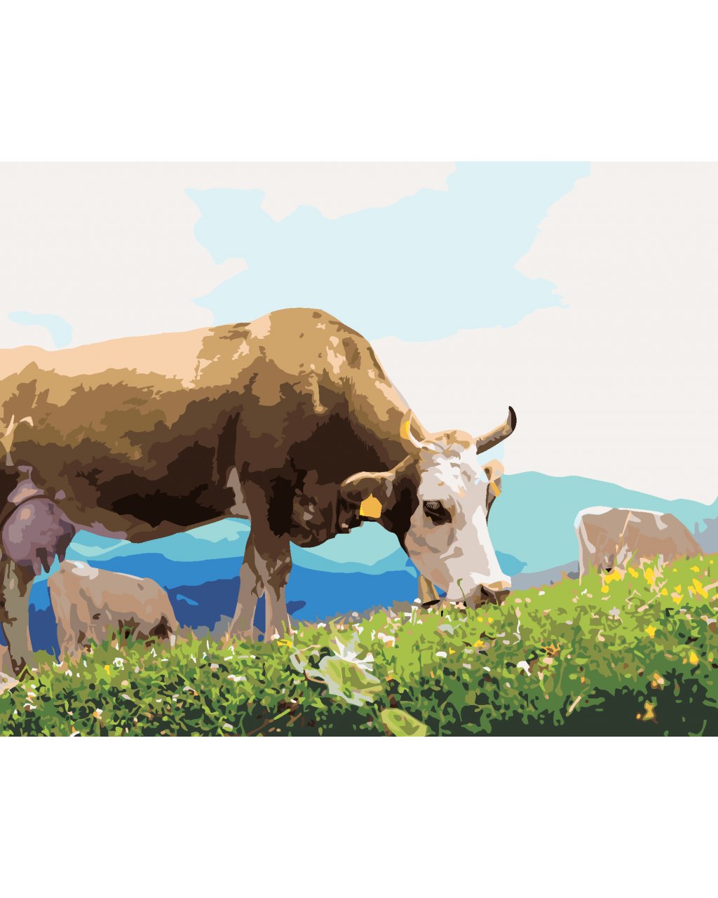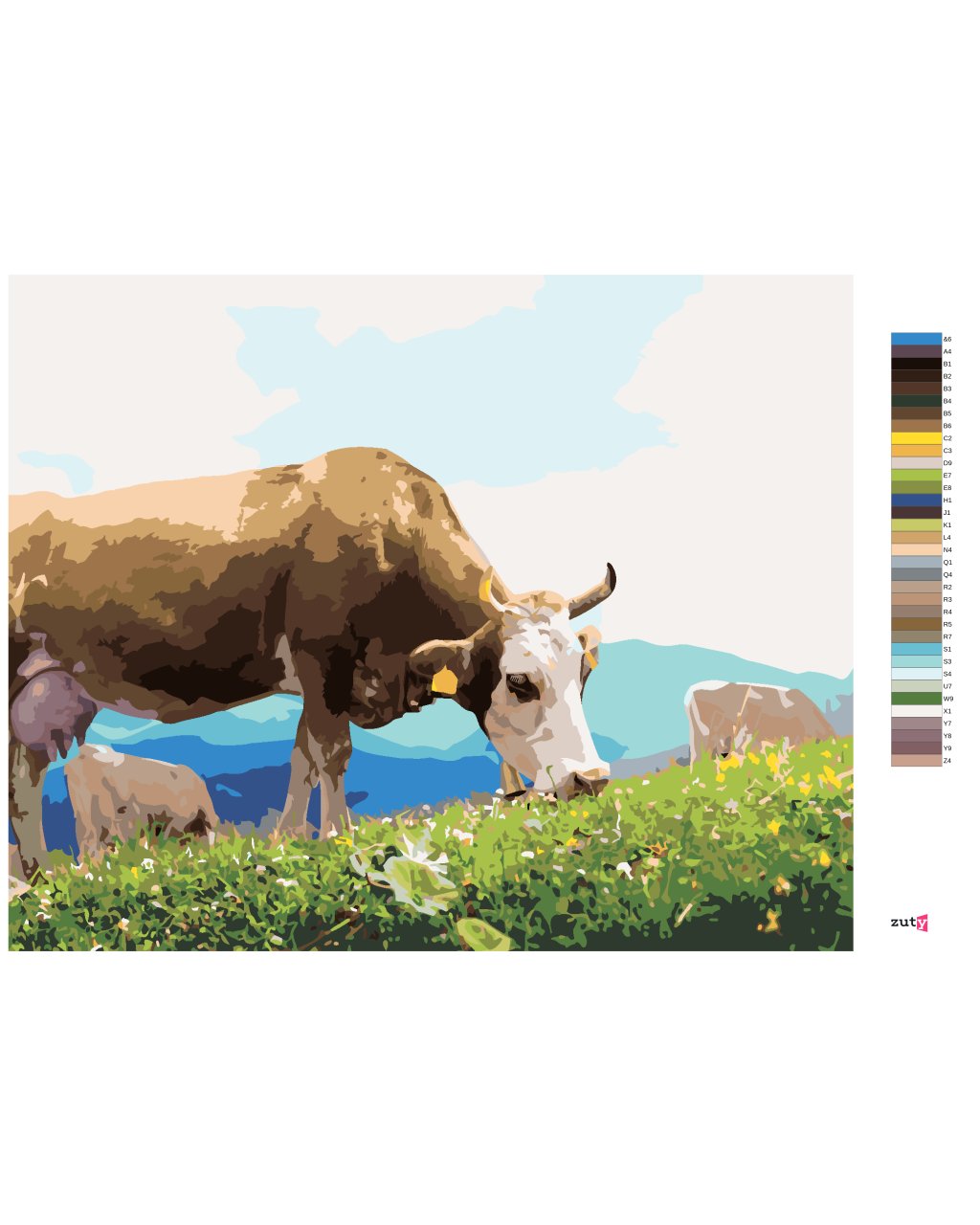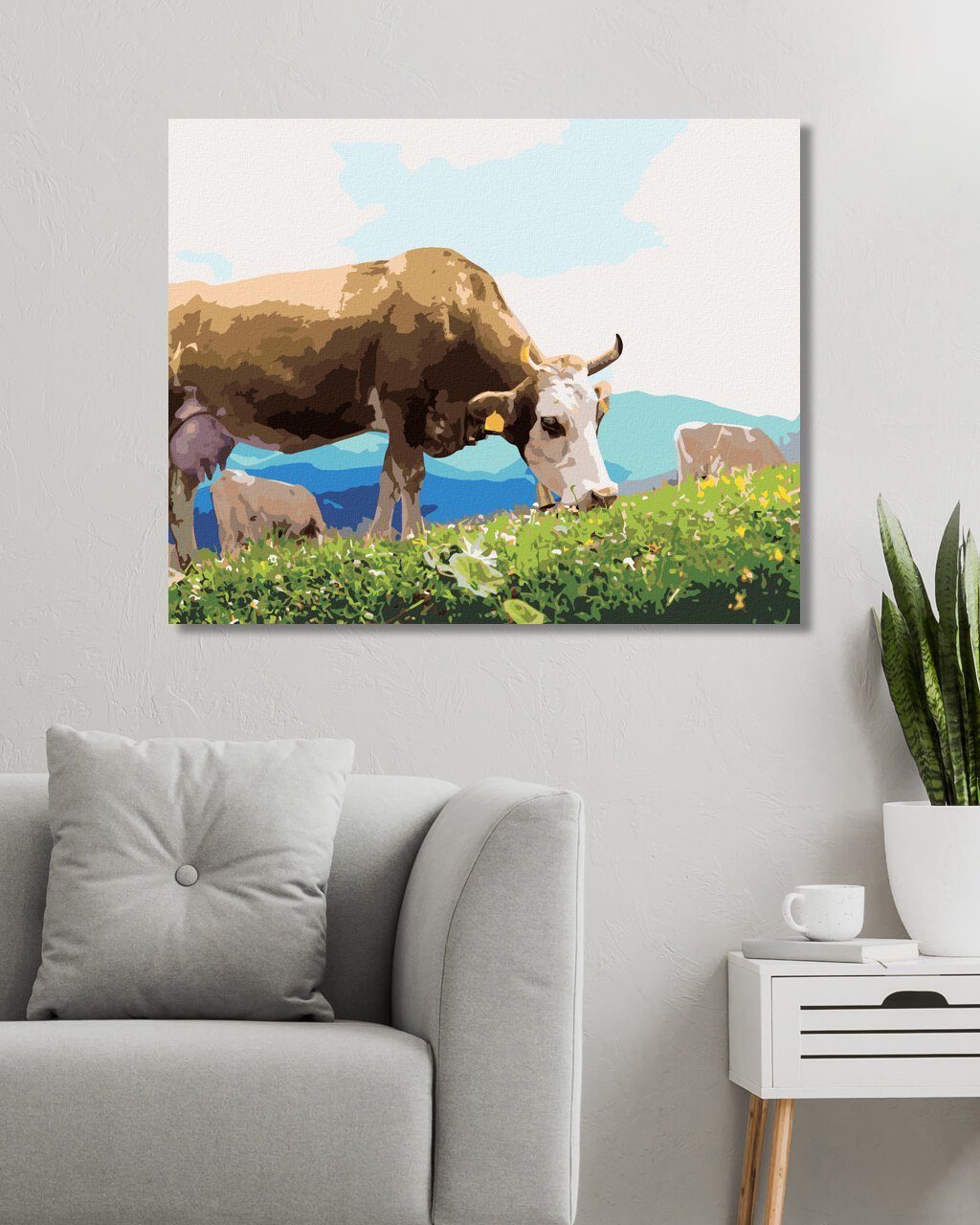 Maľovanie podľa čísel - KRAVA NA PASTVE PRI HORÁCH