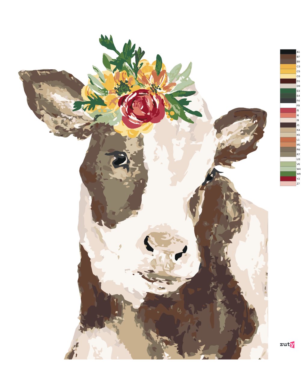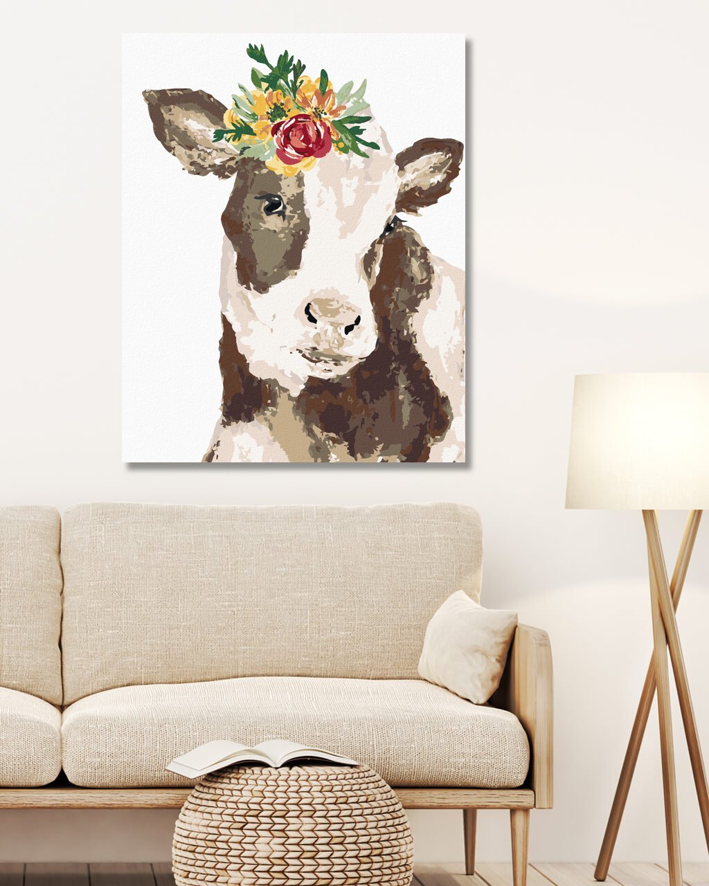 Maľovanie podľa čísel - KRAVA S KVETINOU (HALEY BUSH)