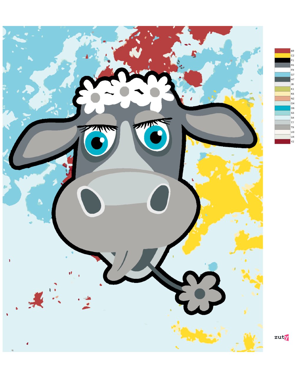 Maľovanie podľa čísel - KRAVA S KYTIČKAMI