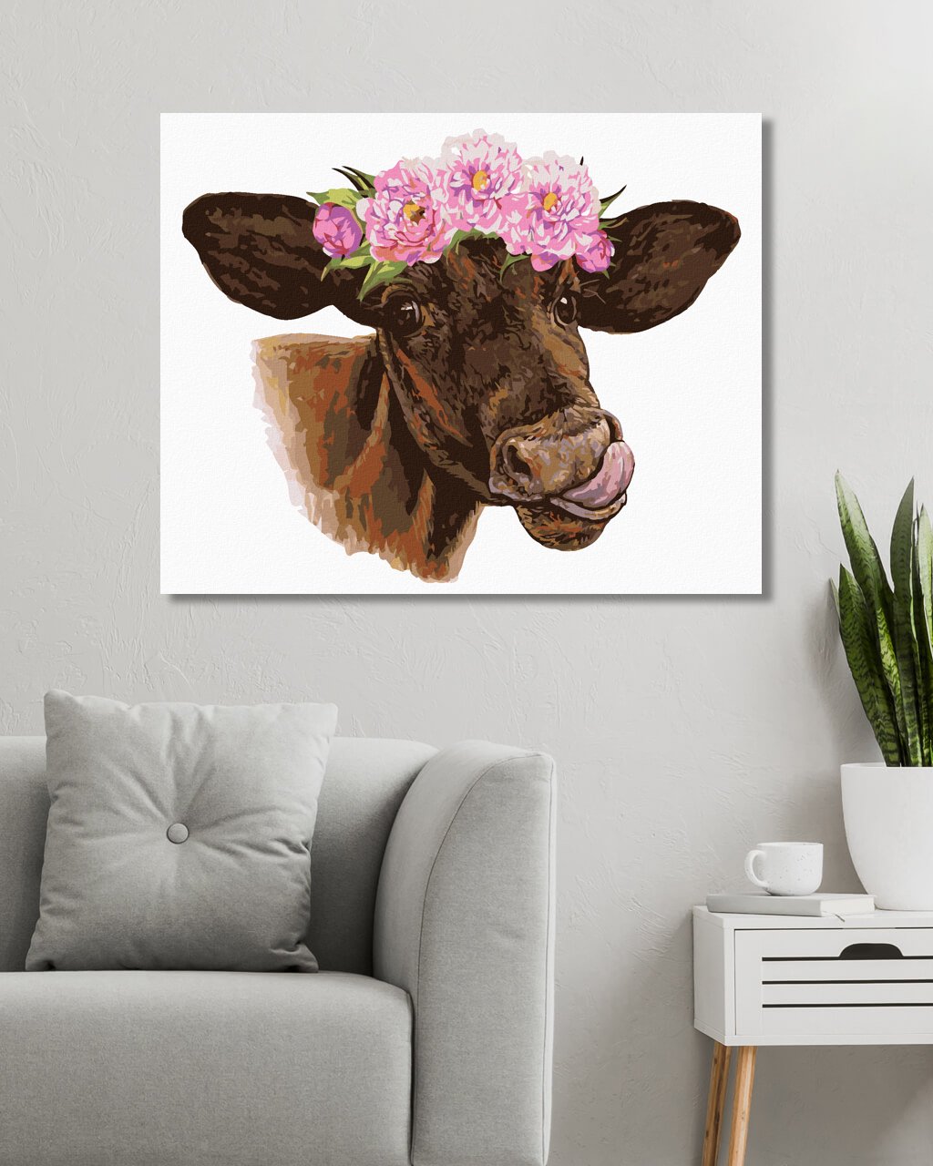 Maľovanie podľa čísel - KRAVA S VYPLAZENÝM JAZYKOM