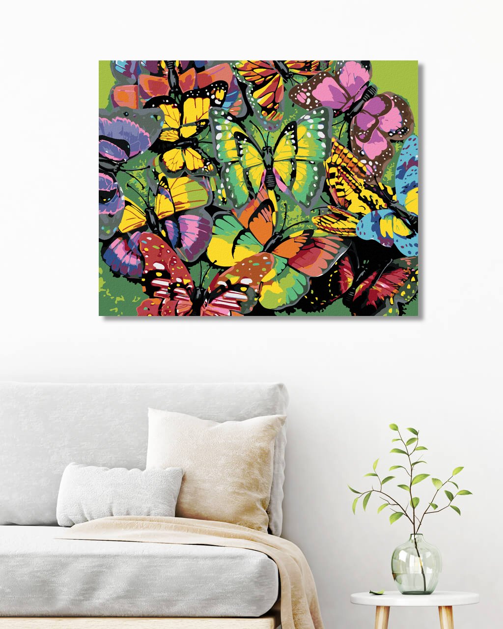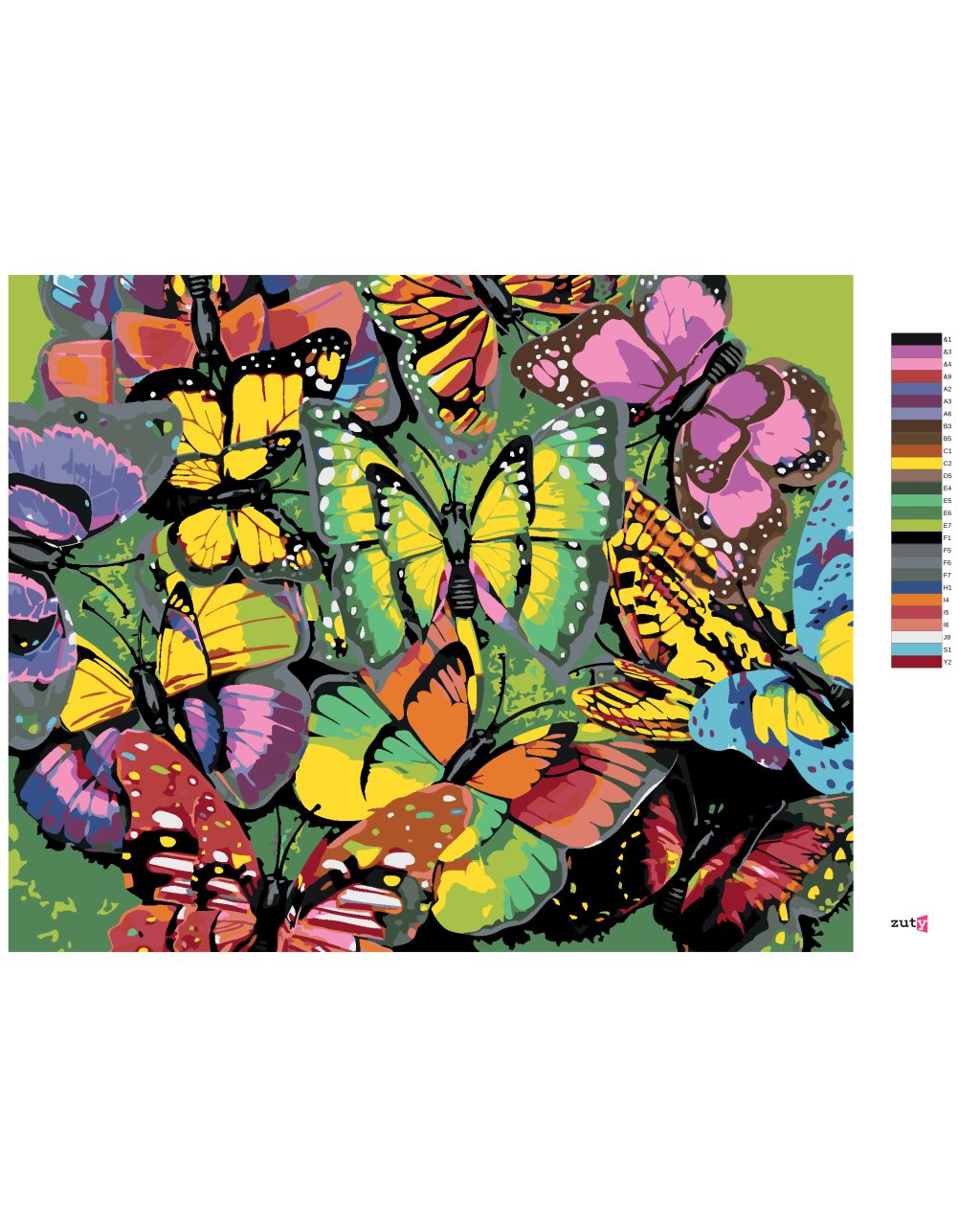 Maľovanie podľa čísel - KŔDEĽ FAREBNÝCH MOTÝĽOV