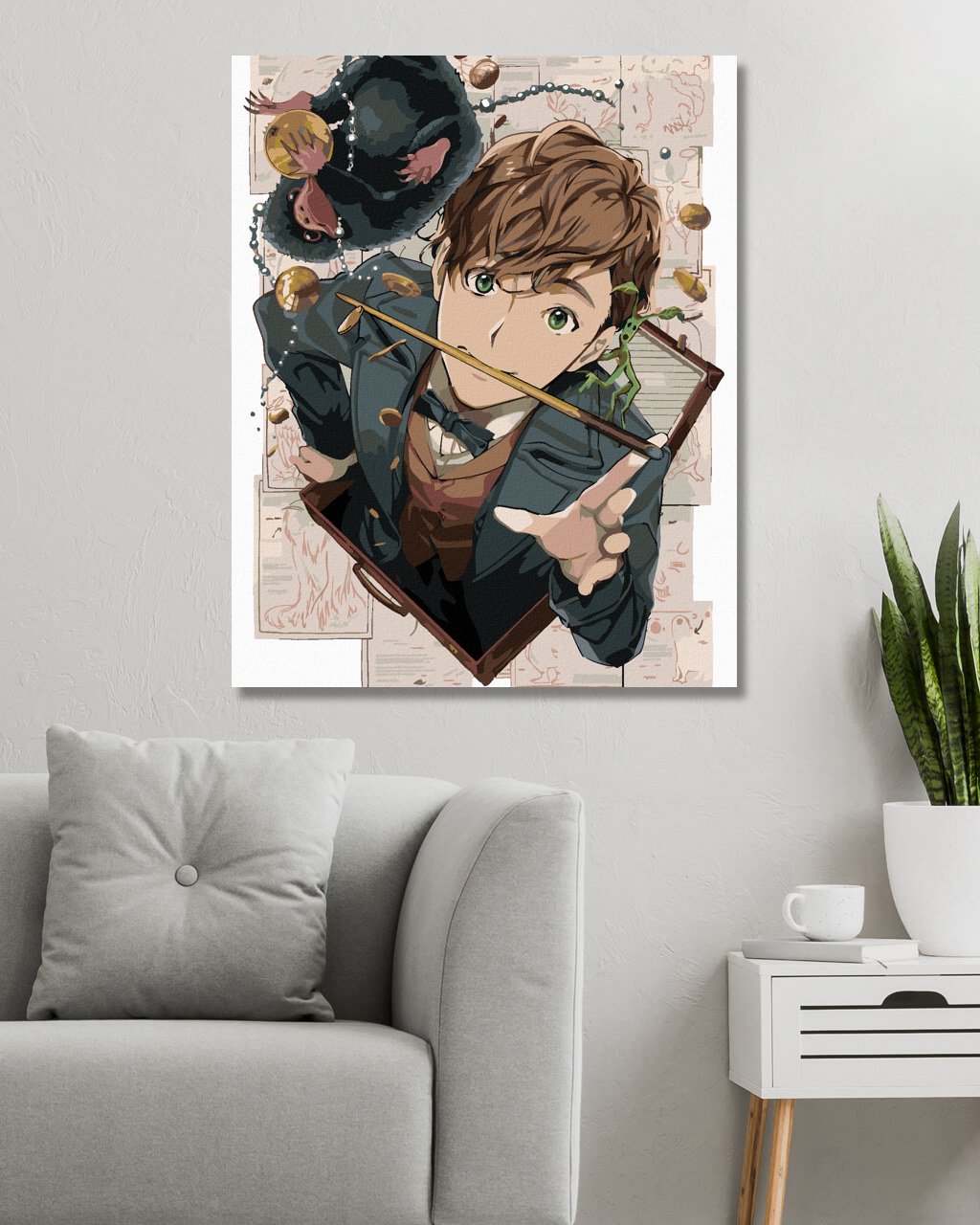 Maľovanie podľa čísel - KRESLENÝ MLOK SCAMANDER, STROMOSTRÁŽCA A ŇUCHÁČ (FANTASTICKÉ ZVIERATÁ)