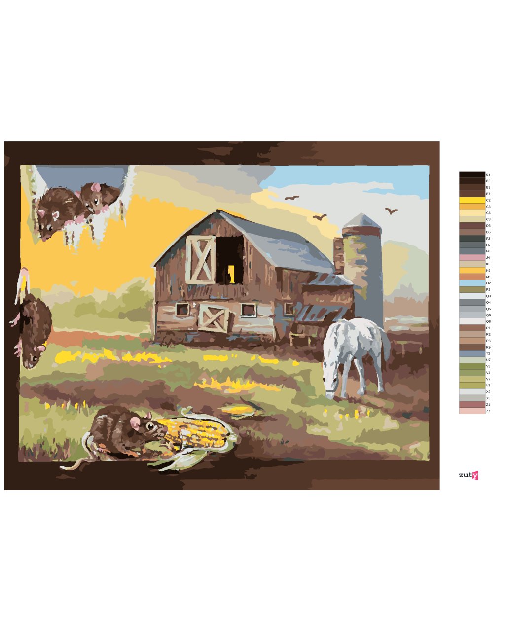 Maľovanie podľa čísel - KRYSA V OBRAZE FARMY A KONE (D. RUSTY RUST)