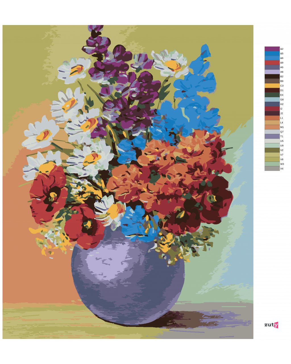 Maľovanie podľa čísel - KVETY V MODREJ VÁZE