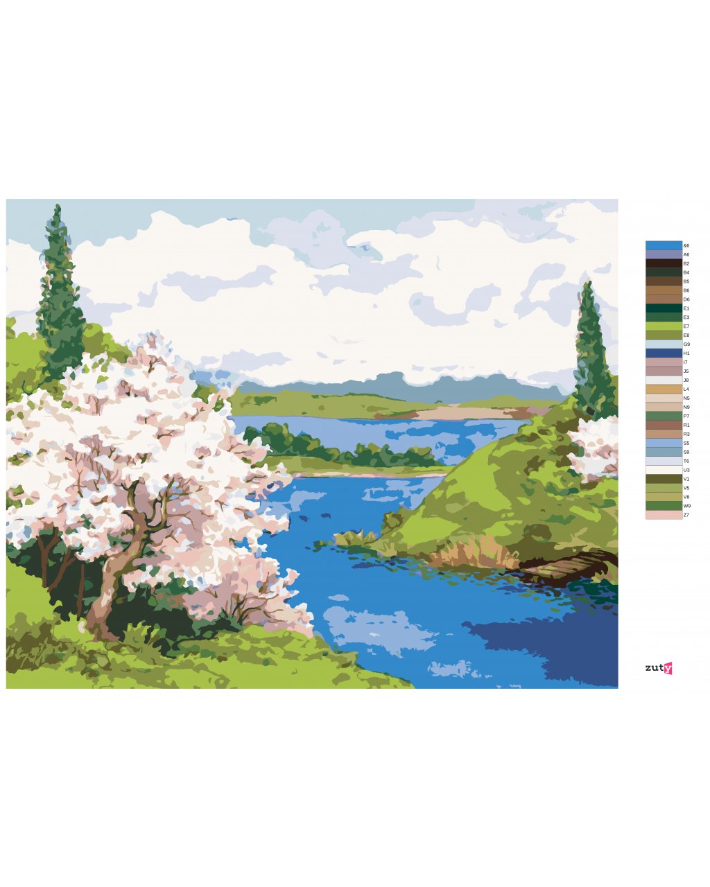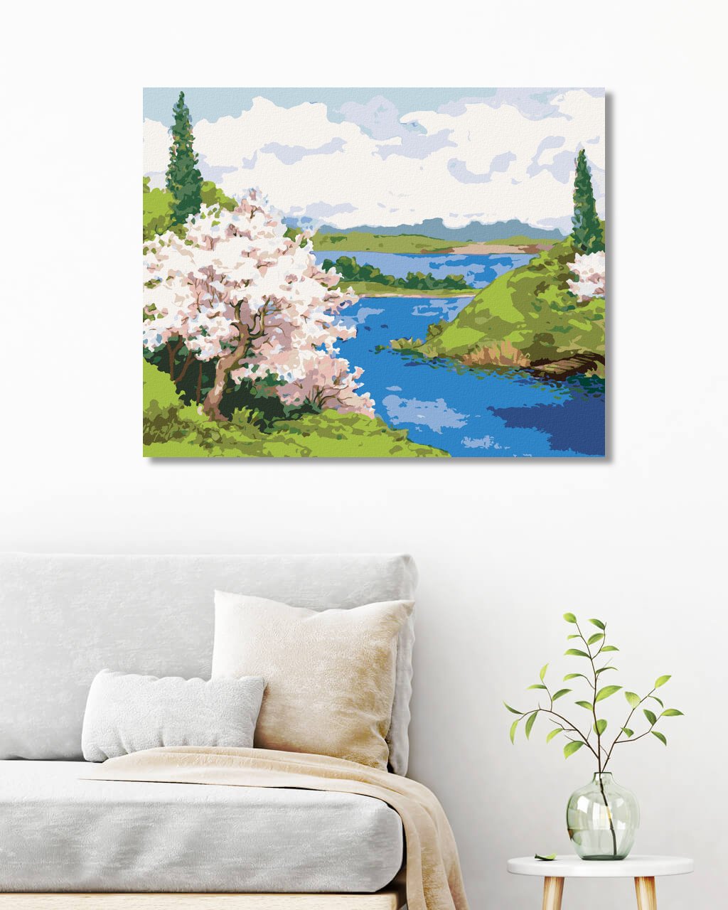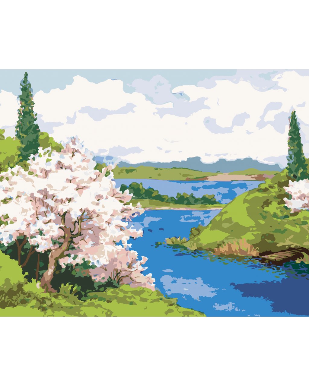 Maľovanie podľa čísel - KVITNÚCE STROMY NA BREHU KĽUKATEJ RIEKY