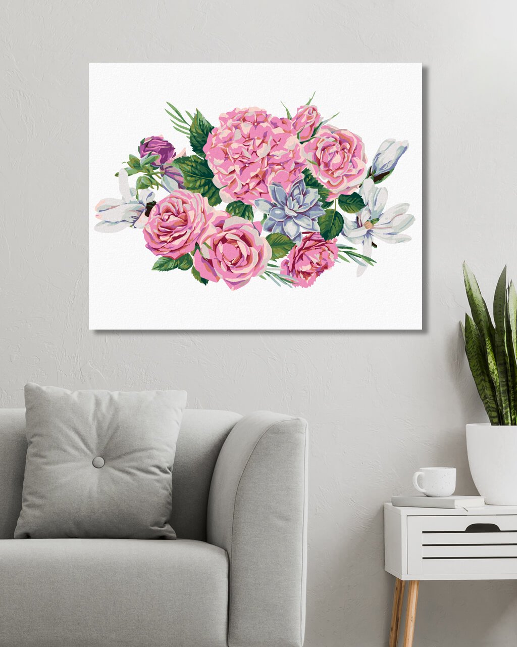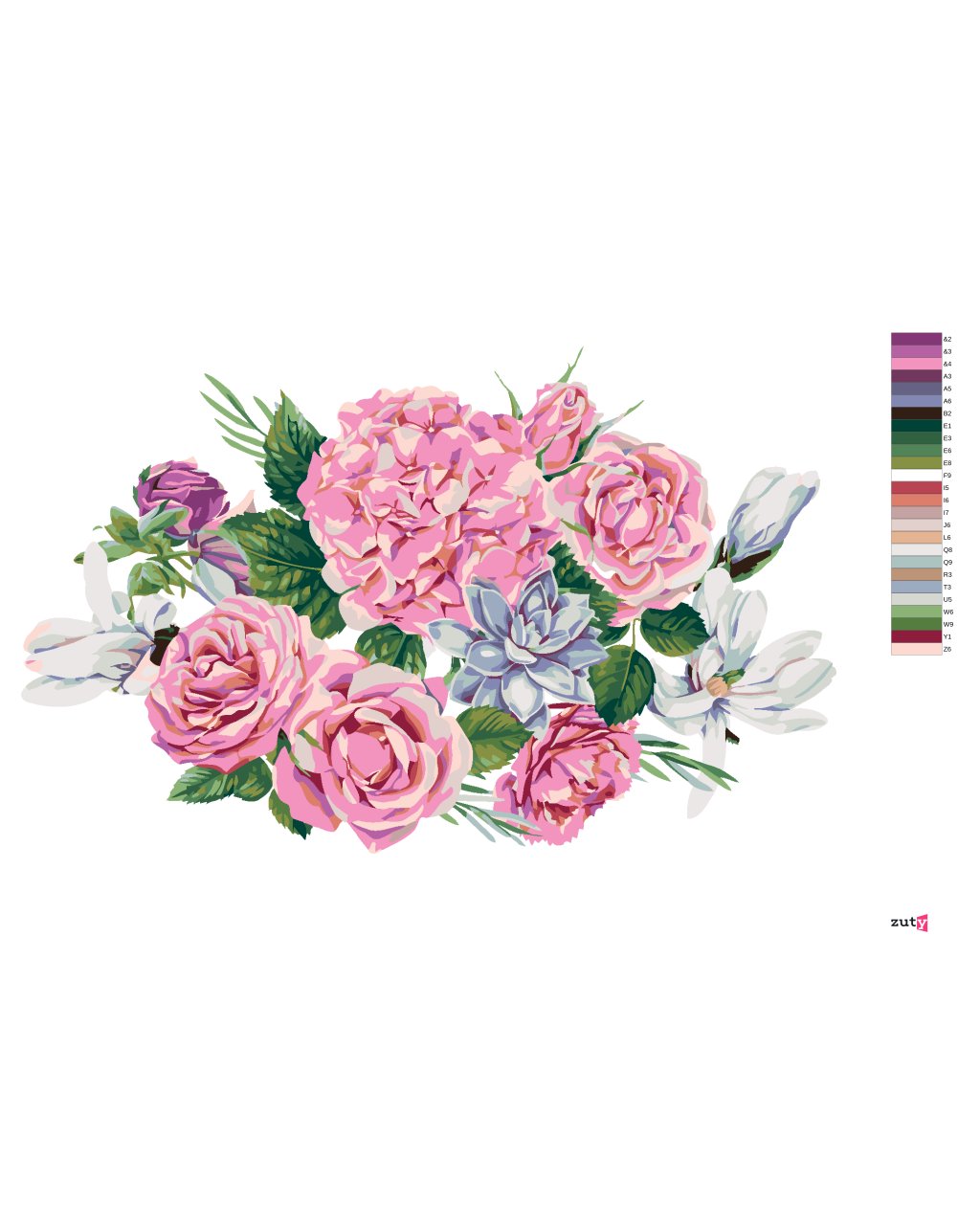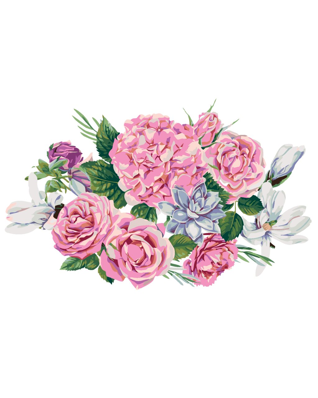 Maľovanie podľa čísel - KYTICA MAGNÓLIÍ, HORTENZIÍ A KARAFIÁTOV
