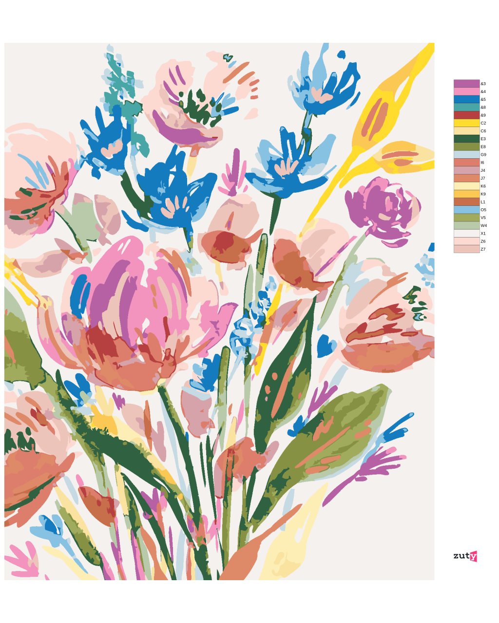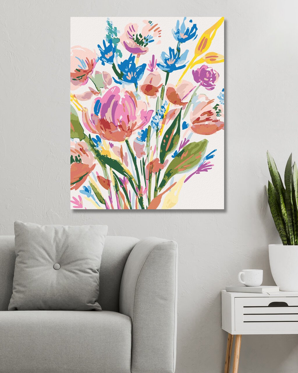 Maľovanie podľa čísel - KYTICA RUŽOVÝCH A MODRÝCH KVETOV (ALEXANDRIA GILBERT)