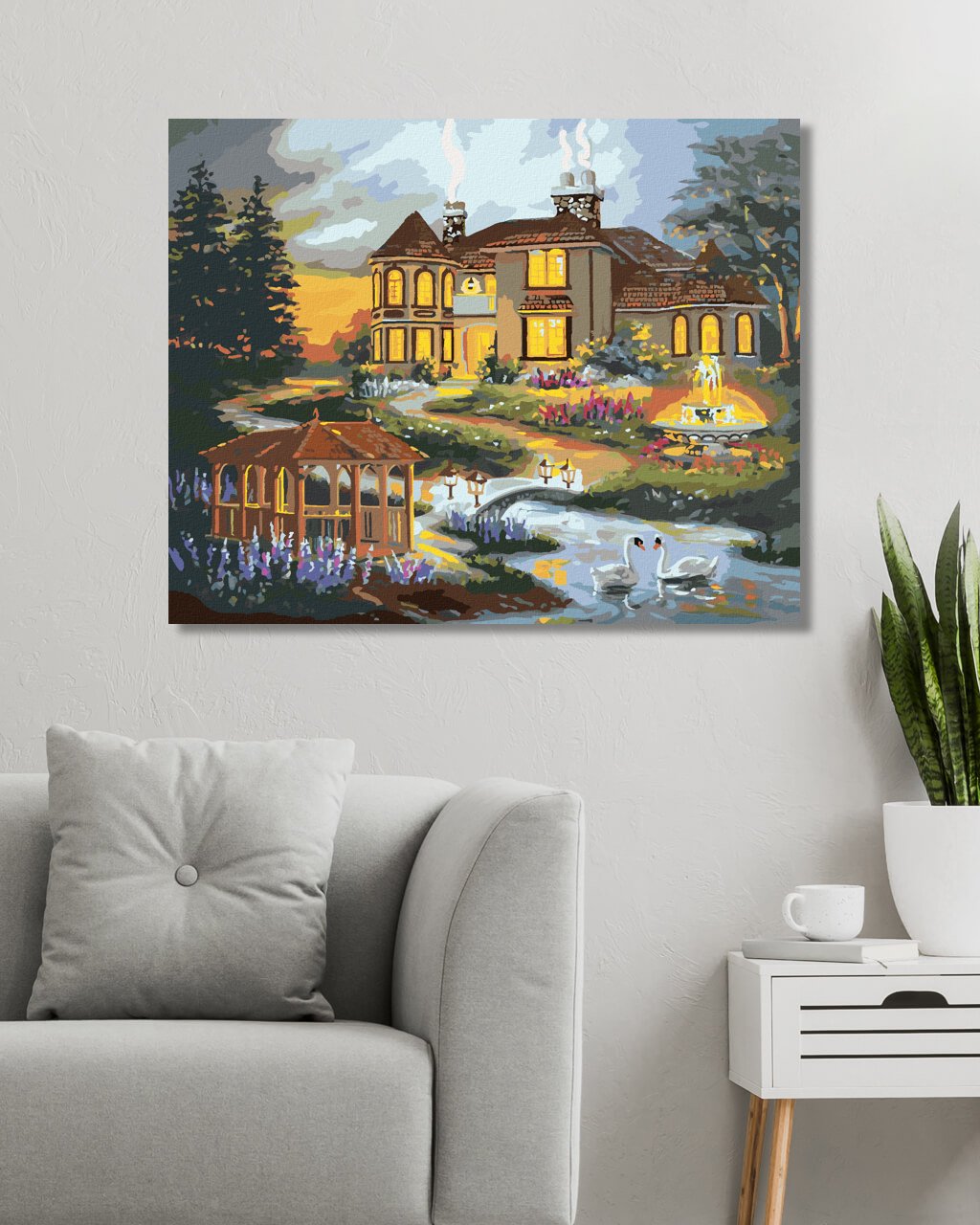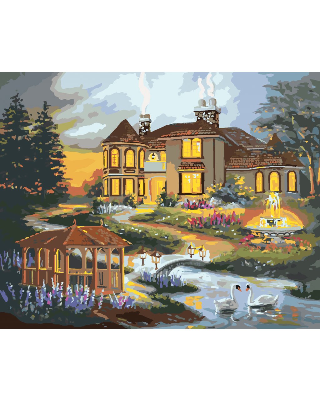 Maľovanie podľa čísel - LABUTE, ALTÁN A FONTÁNA PRI DOME (D. RUSTY RUST)