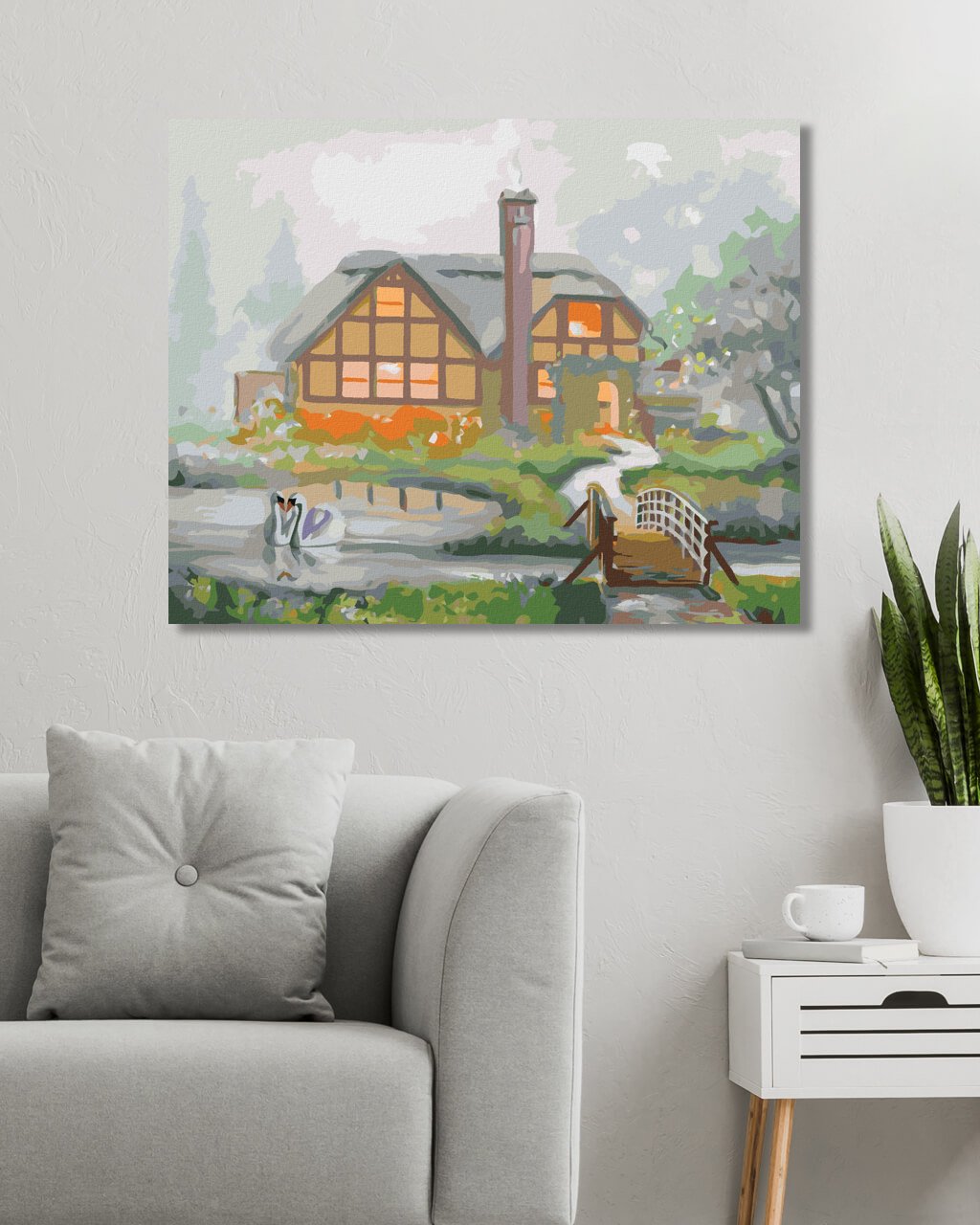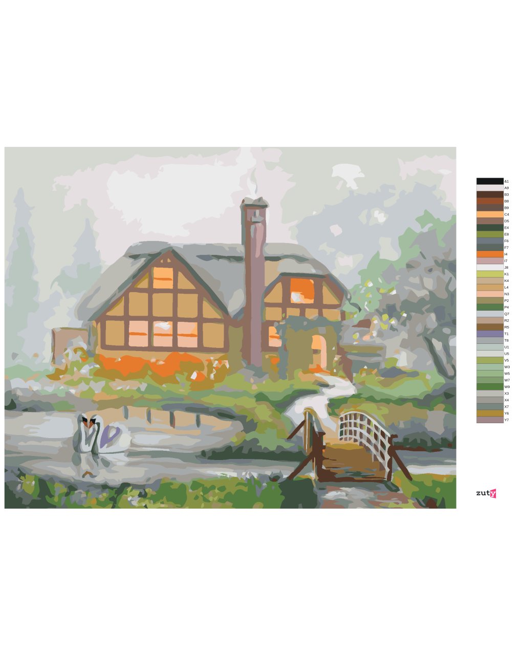 Maľovanie podľa čísel - LABUTE A DOM V HMLE (D. RUSTY RUST)