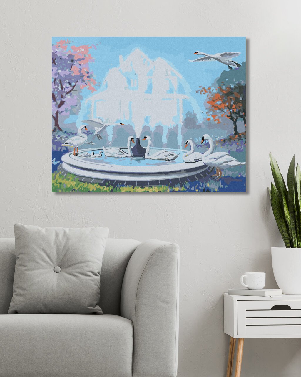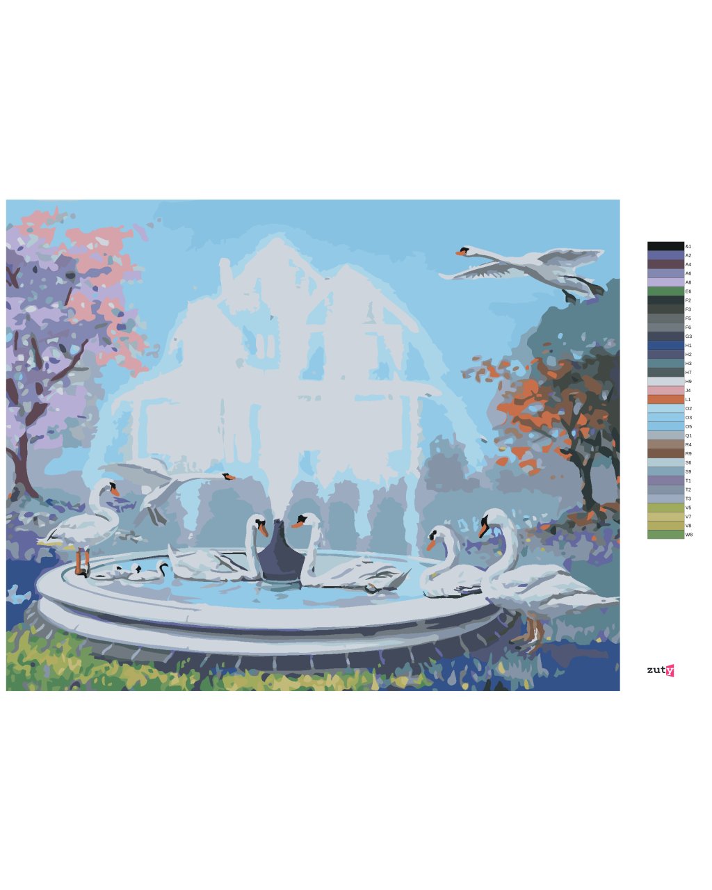 Maľovanie podľa čísel - LABUTE A FONTÁNA (D. RUSTY RUST)