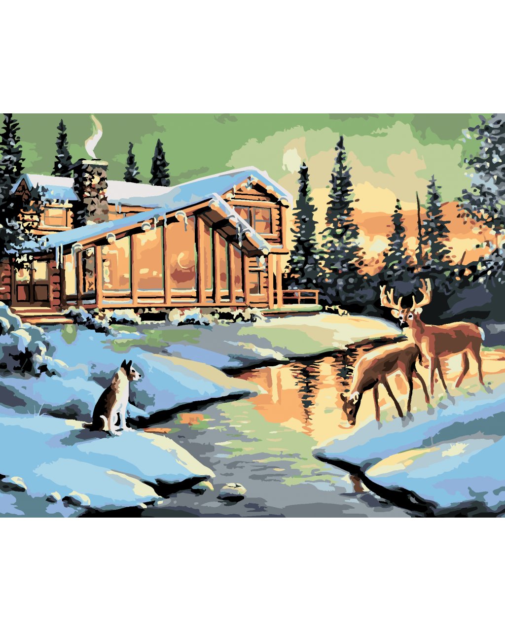 Maľovanie podľa čísel - LAŇ, JELEŇ A PES PRI ZRUBE (D. RUSTY RUST)