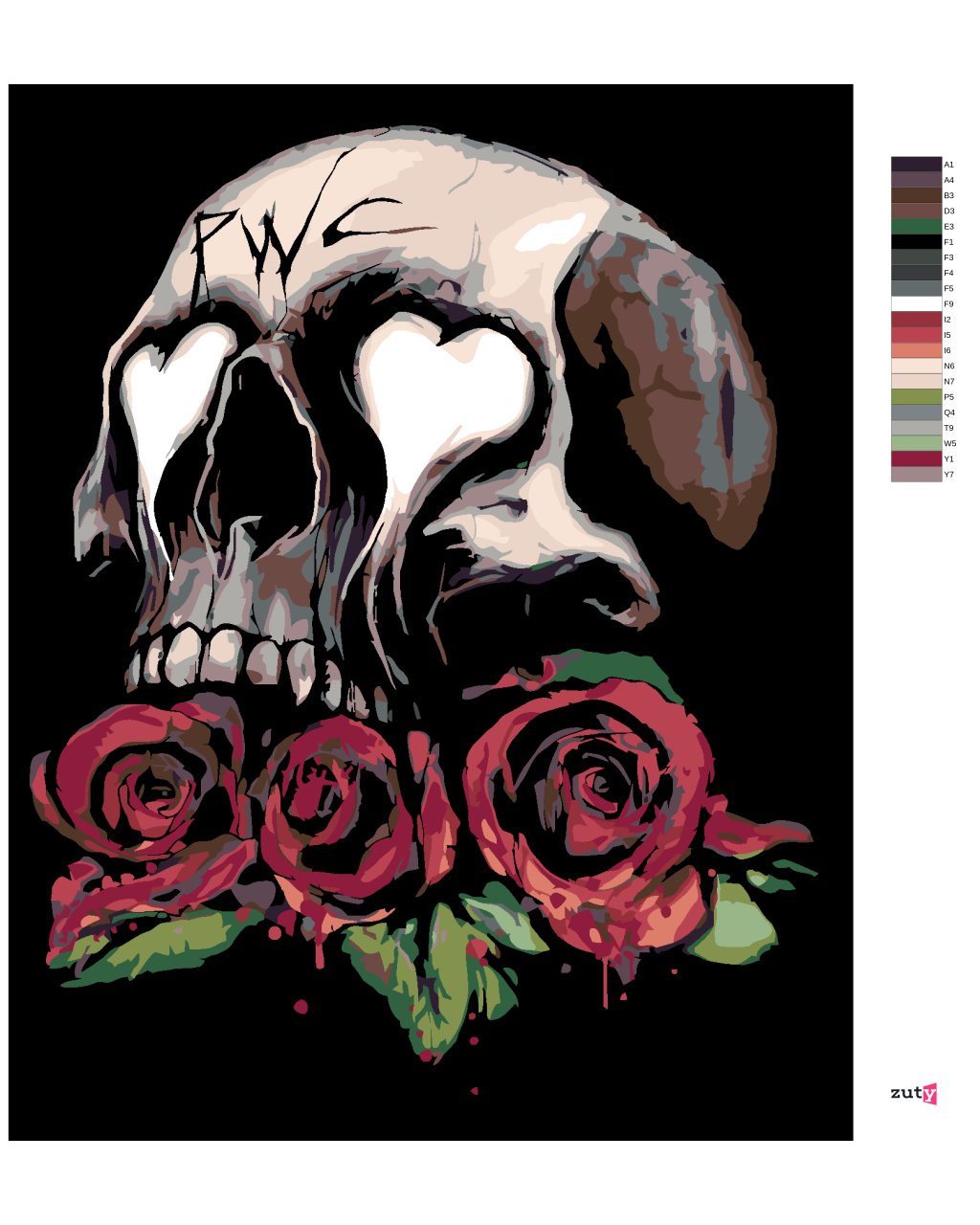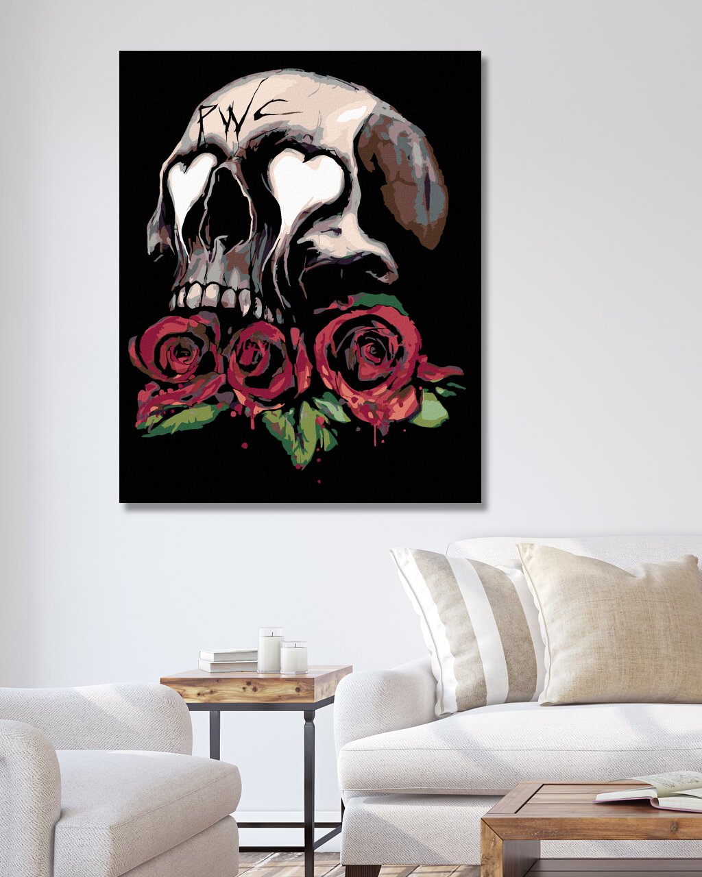 Maľovanie podľa čísel - LEBKA A TRI RUDÉ RUŽE