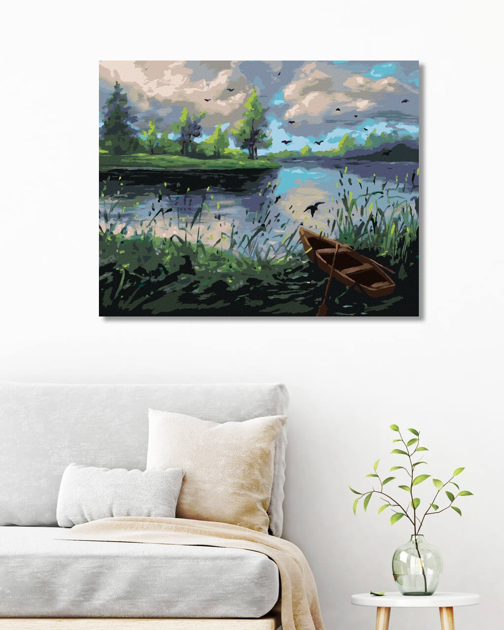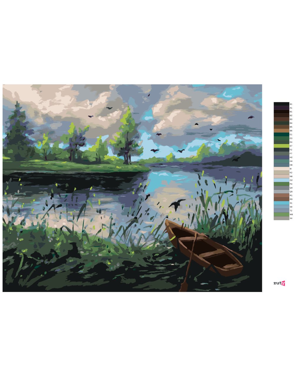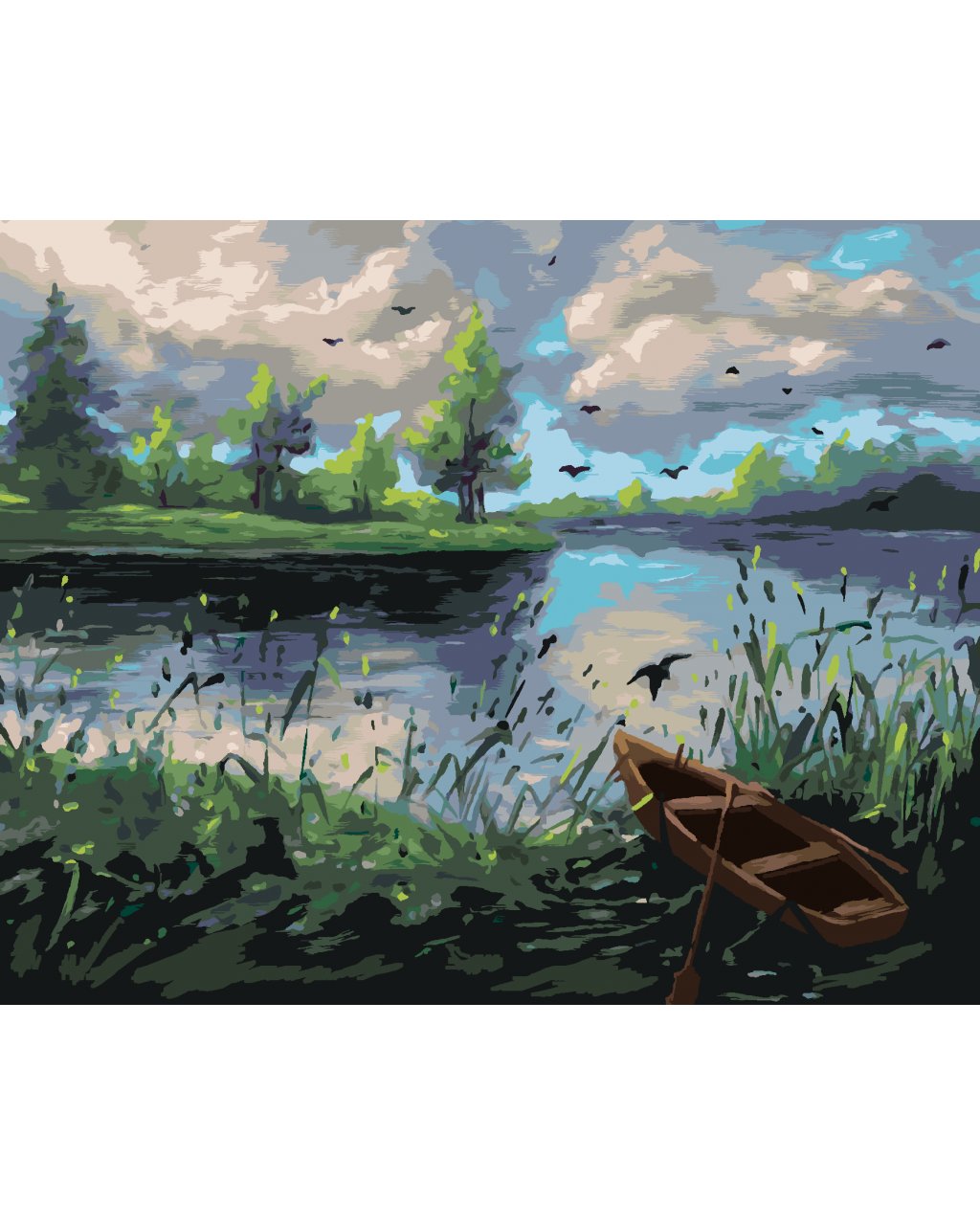 Maľovanie podľa čísel - LESNÁ KRAJINA S LOĎKOU