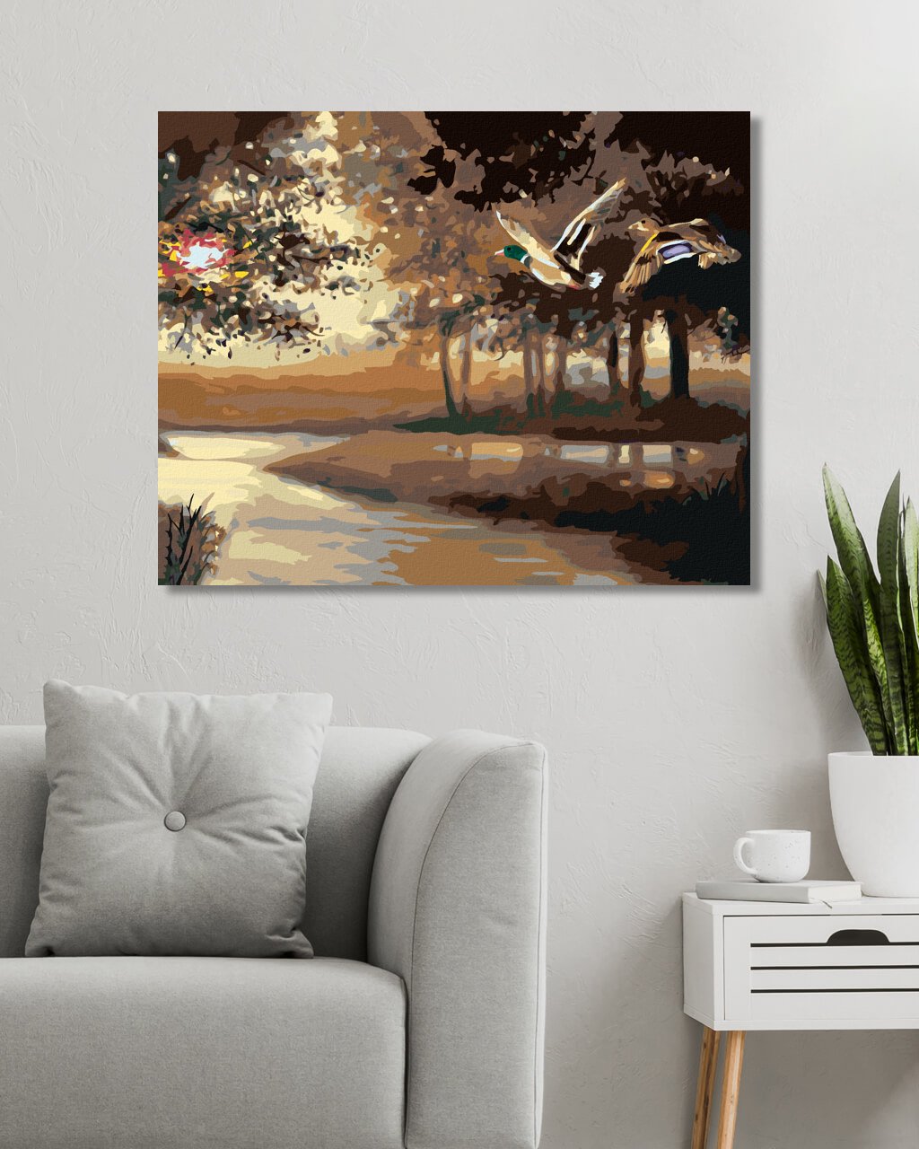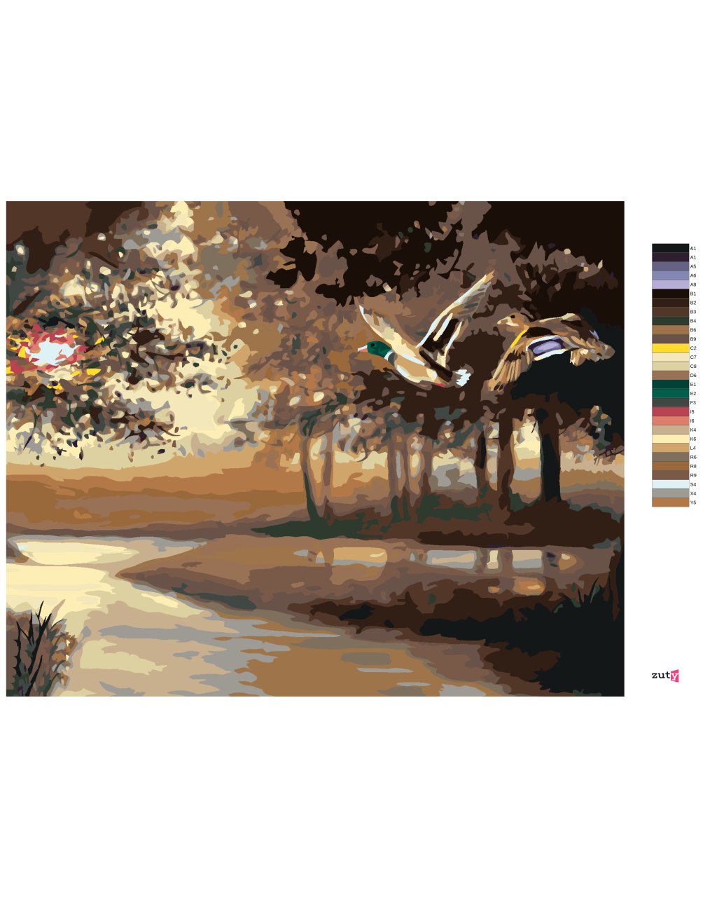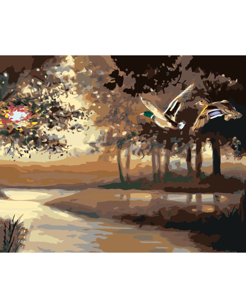 Maľovanie podľa čísel - LETIACE KAČKY NAD RIEKOU (D. RUSTY RUST)