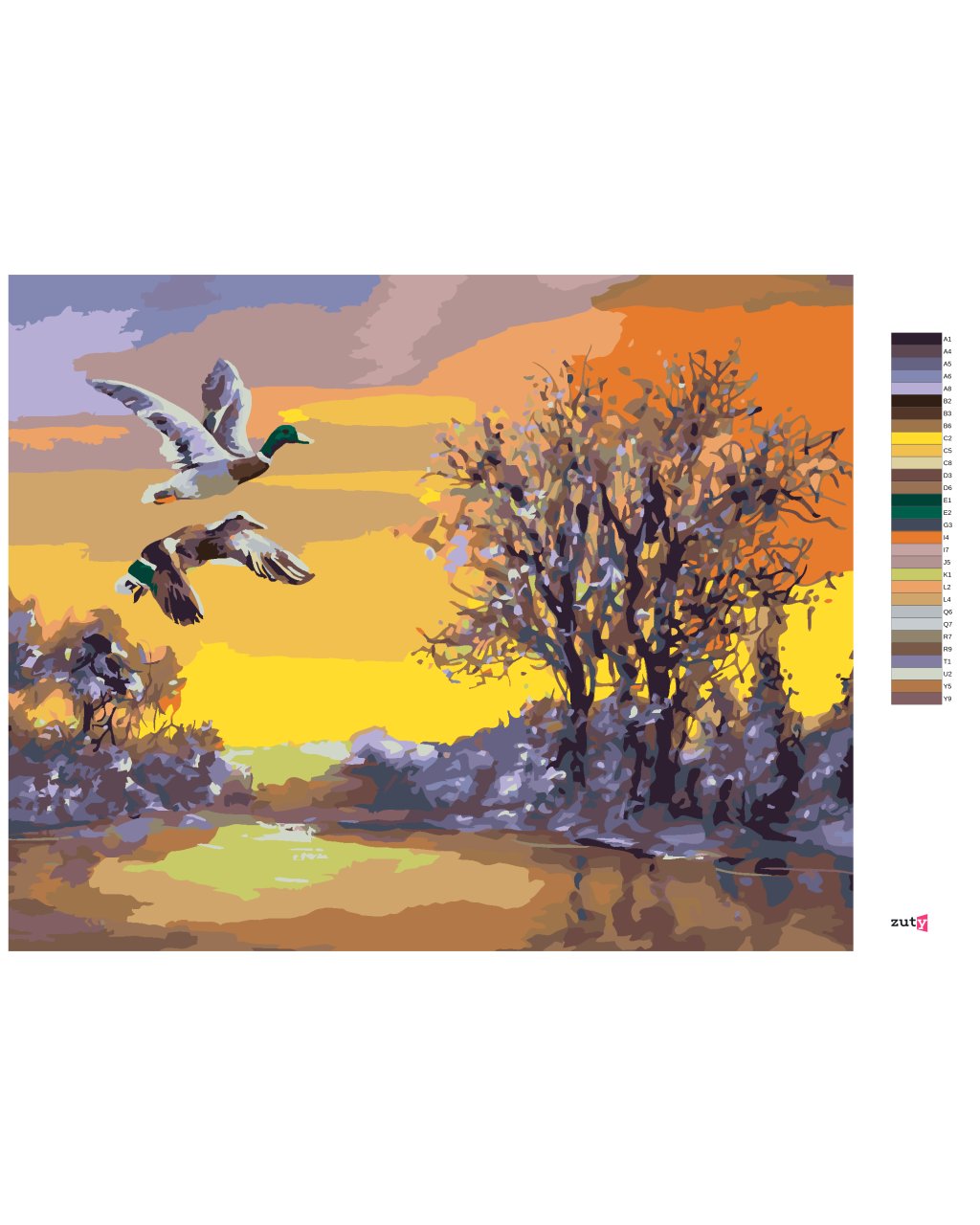 Maľovanie podľa čísel - LETIACE KAČKY NAD RIEKOU V ZIME (D. RUSTY RUST)