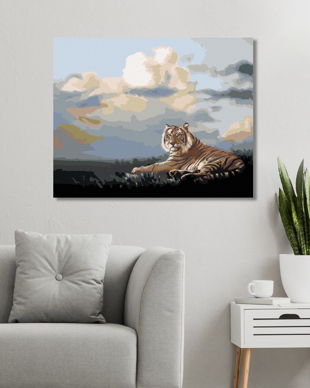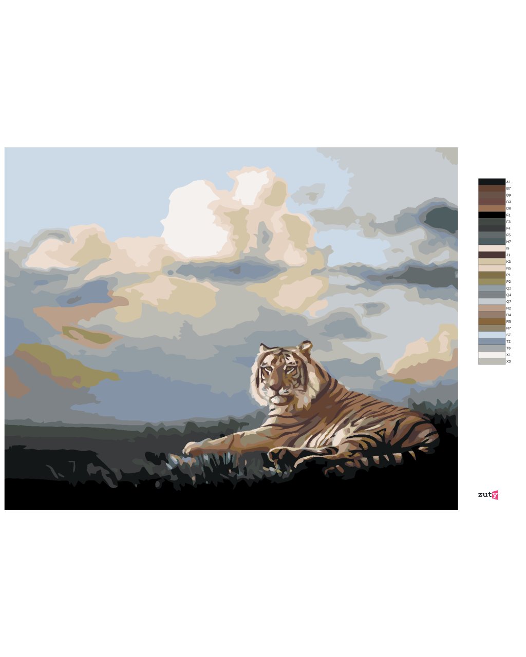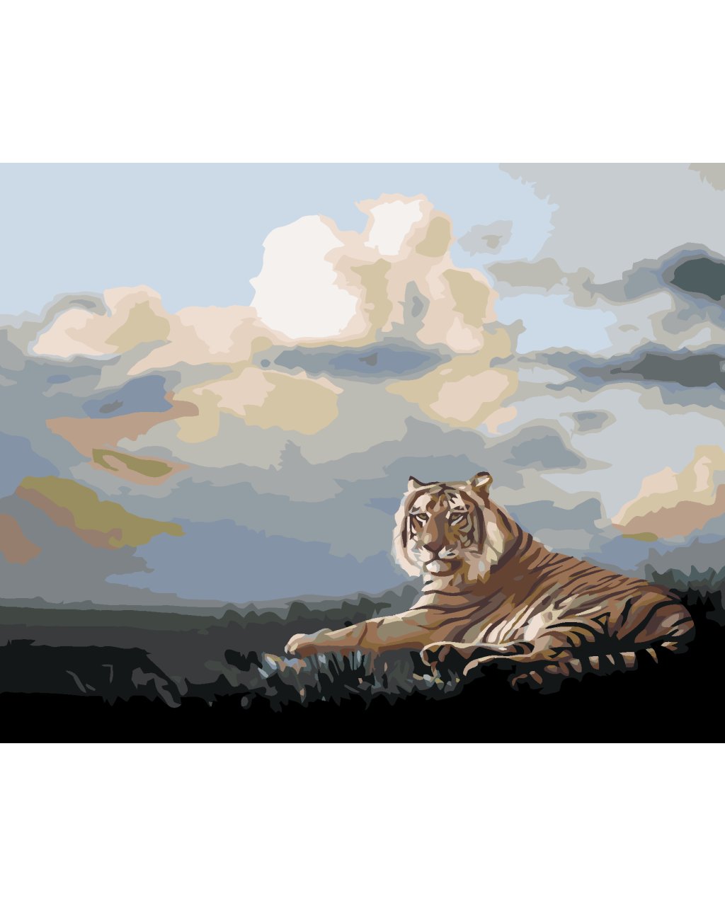 Maľovanie podľa čísel - LEŽIACI TIGER A MRAKY (D. RUSTY RUST)