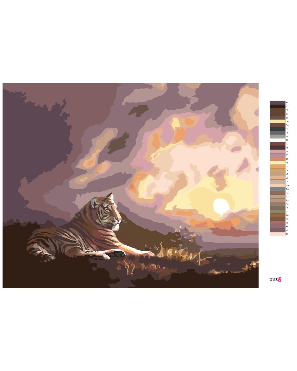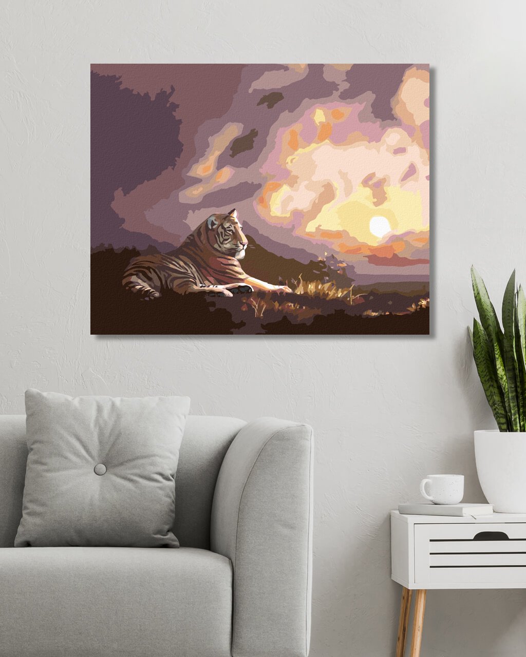 Maľovanie podľa čísel - LEŽIACI TIGER A ZÁPAD SLNKA (D. RUSTY RUST)