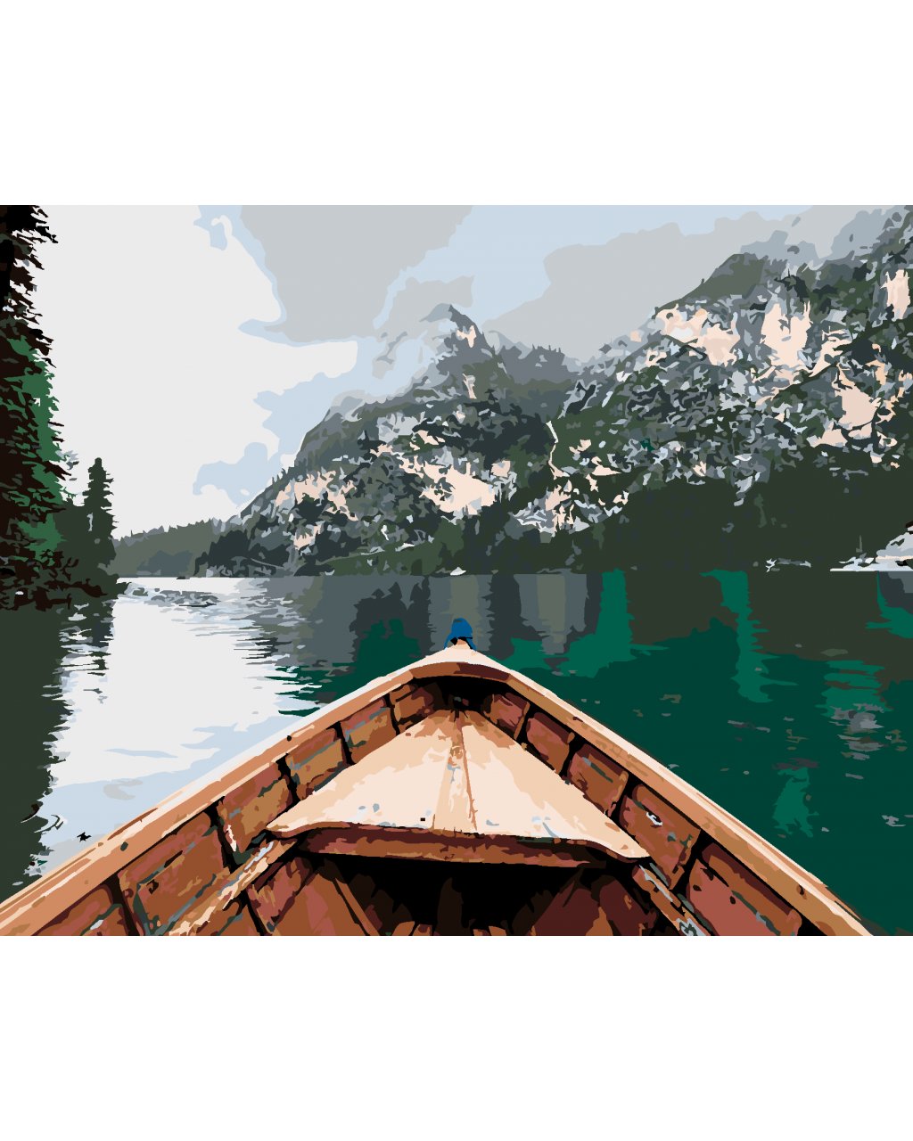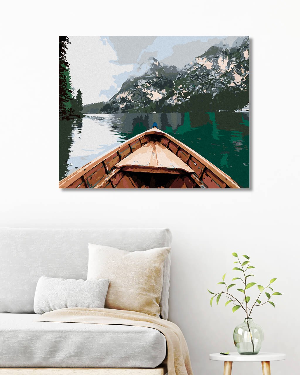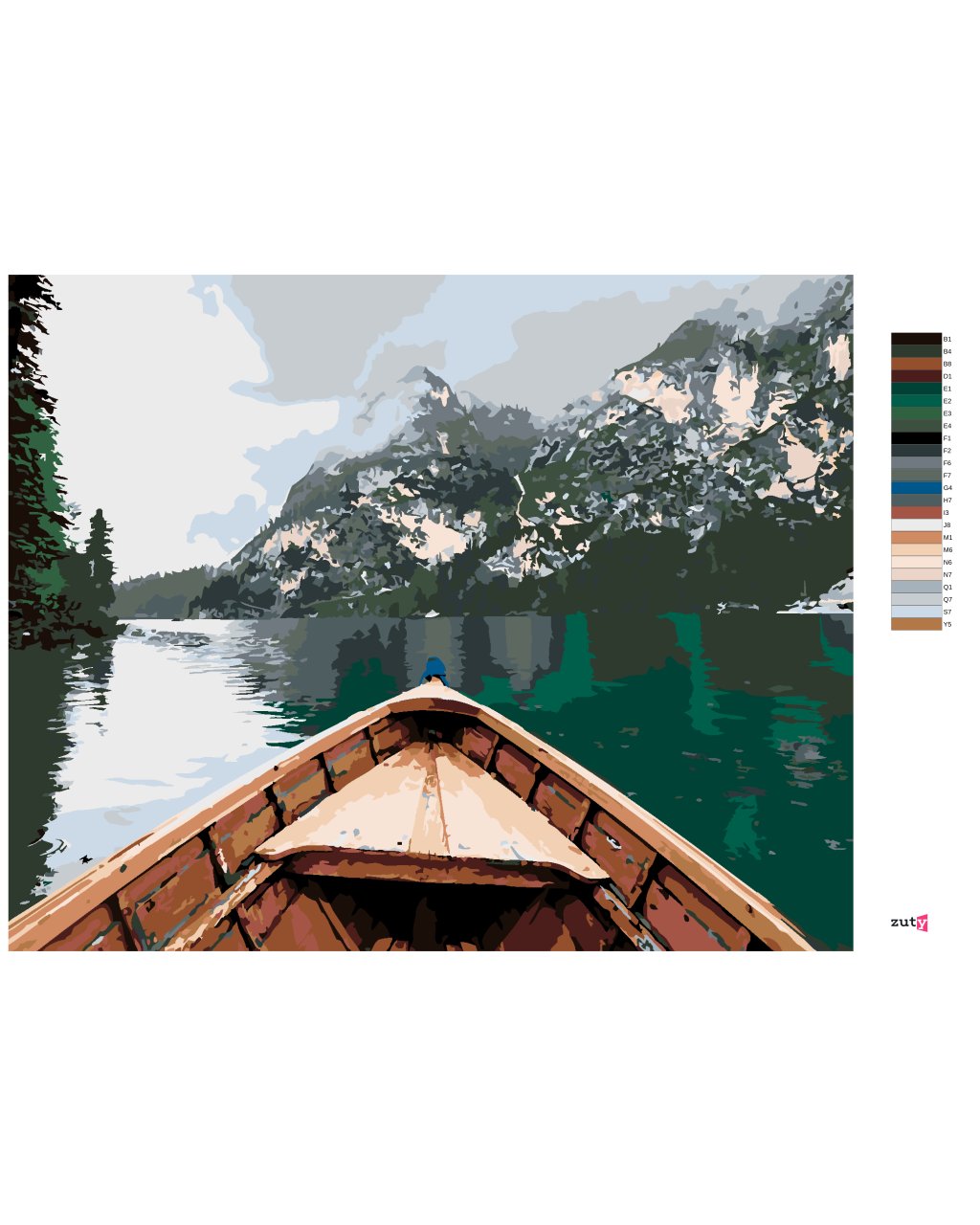 Maľovanie podľa čísel - LOĎ NA JAZERE A HORY V HMLE