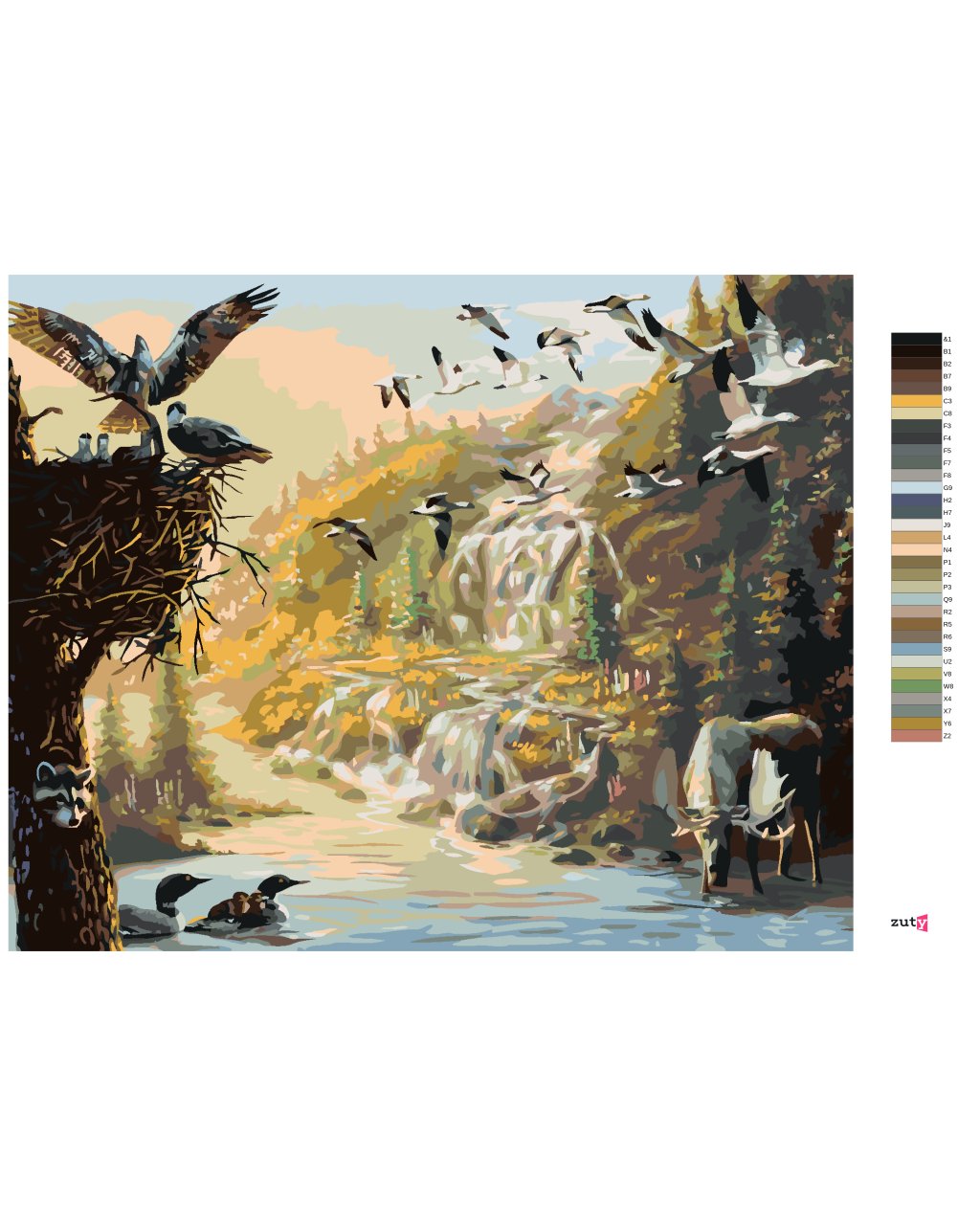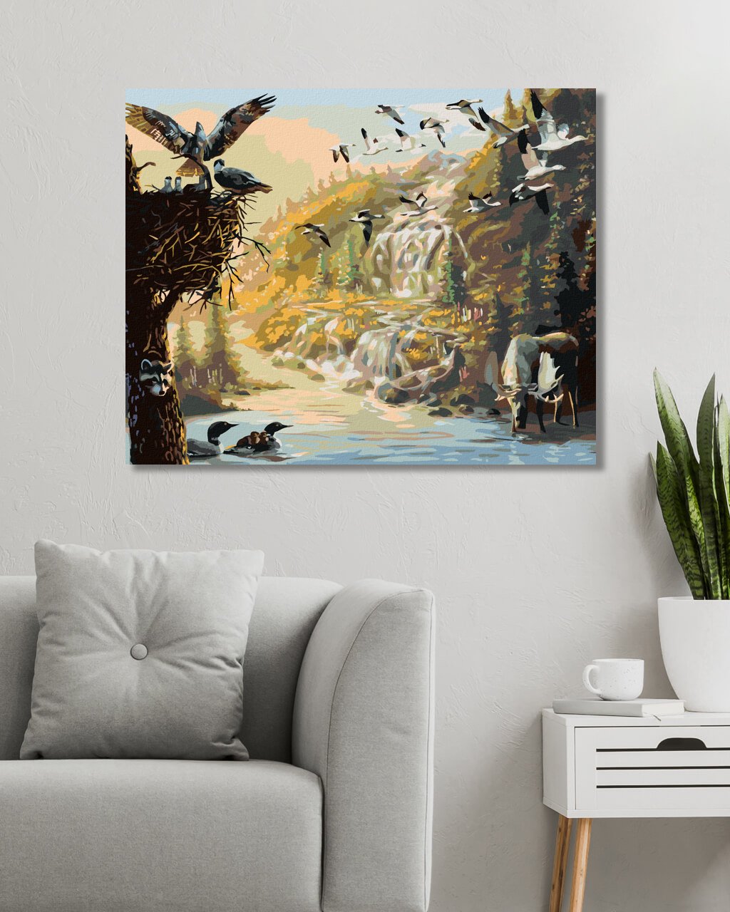 Maľovanie podľa čísel - LOS, VTÁKY A KAČKY PRI NAPÁJADLE (D. RUSTY RUST)