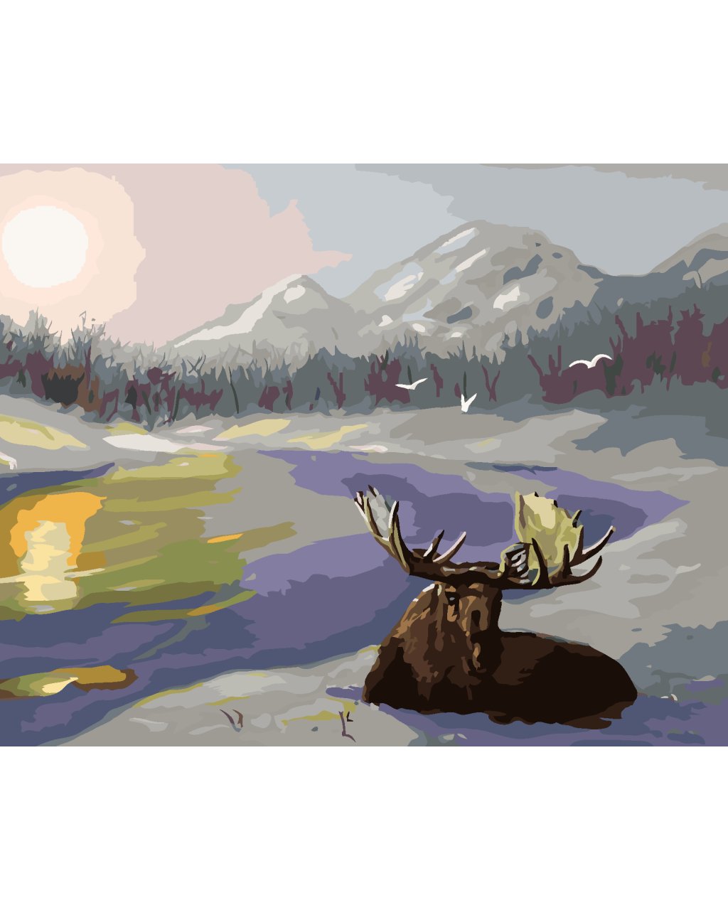 Maľovanie podľa čísel - LOS LEŽIACI V SNEHU A RIEKA (D. RUSTY RUST)