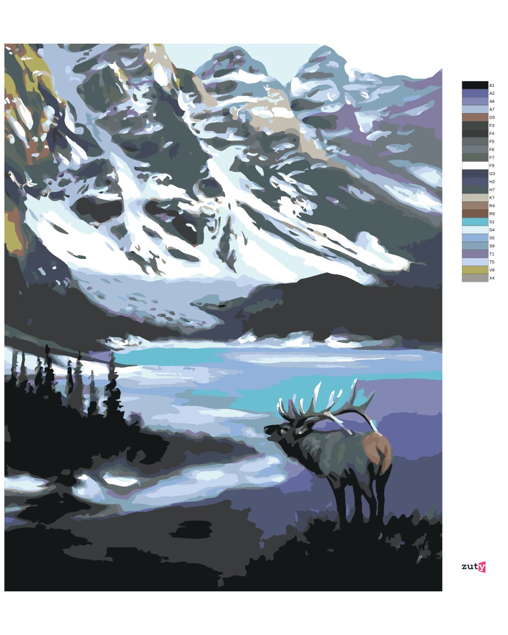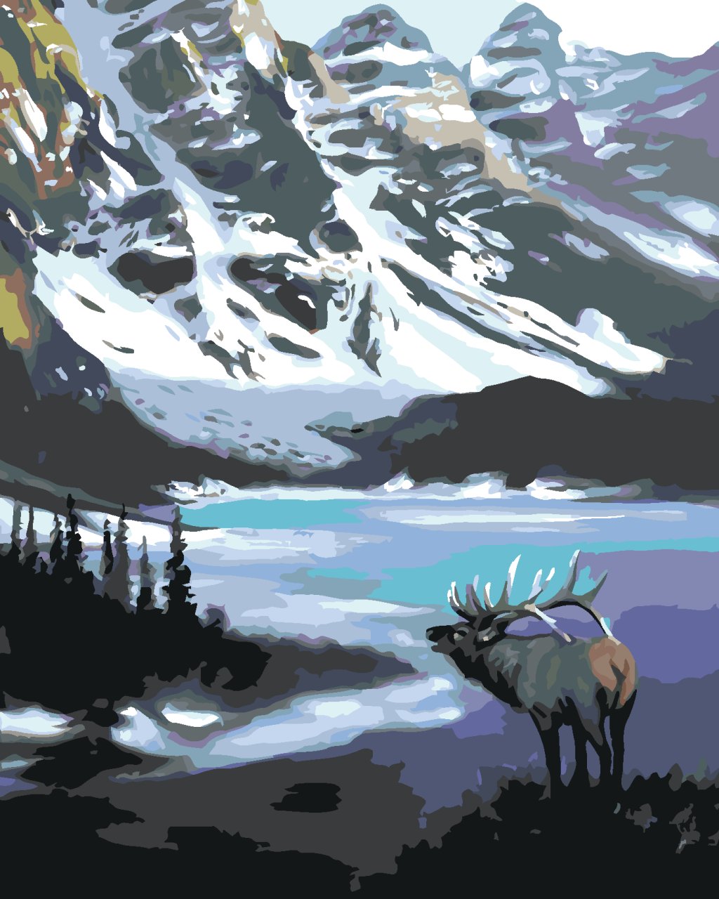 Maľovanie podľa čísel - LOS V HORÁCH POČAS ZIMY (D. RUSTY RUST)