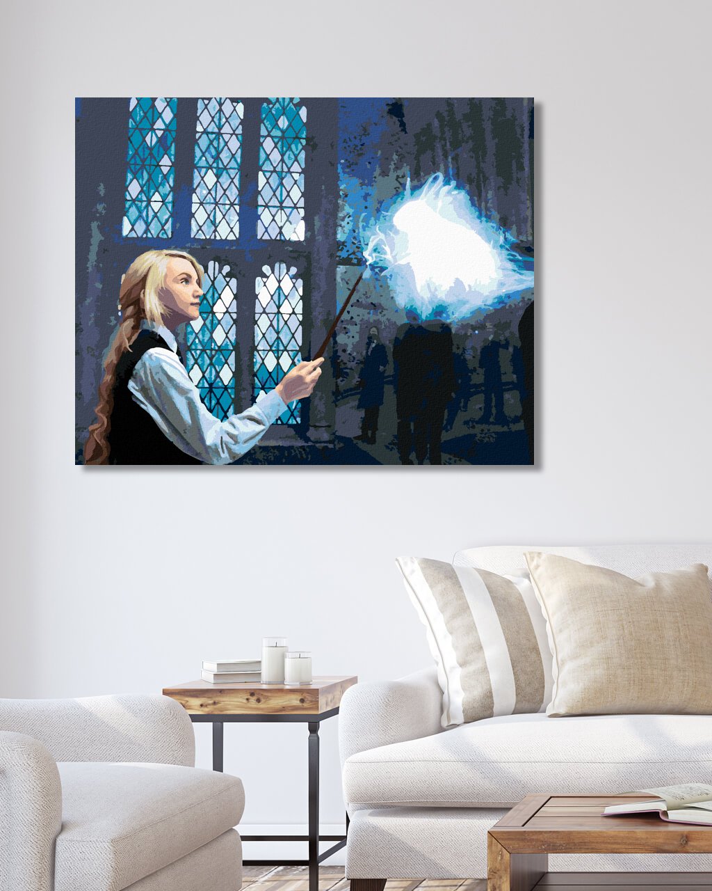 Maľovanie podľa čísel - LUNA ČARUJE PATRONA (HARRY POTTER)