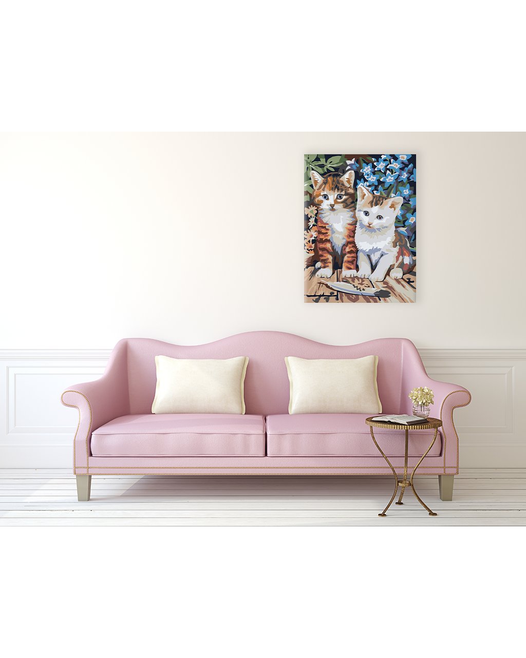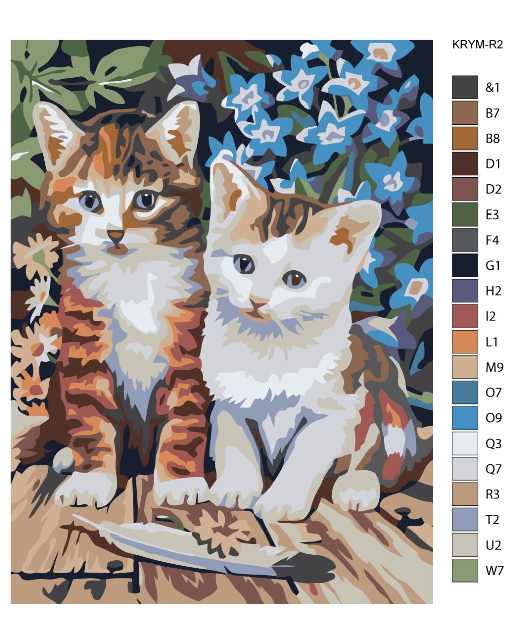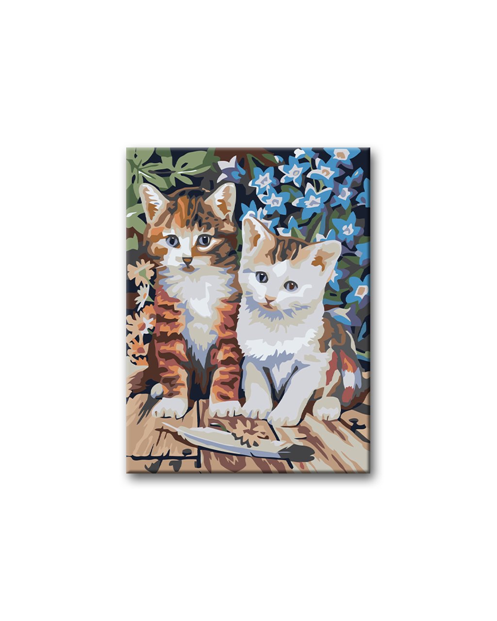 Maľovanie podľa čísel - MAČIATKA MEDZI KVETMI A PIERKO