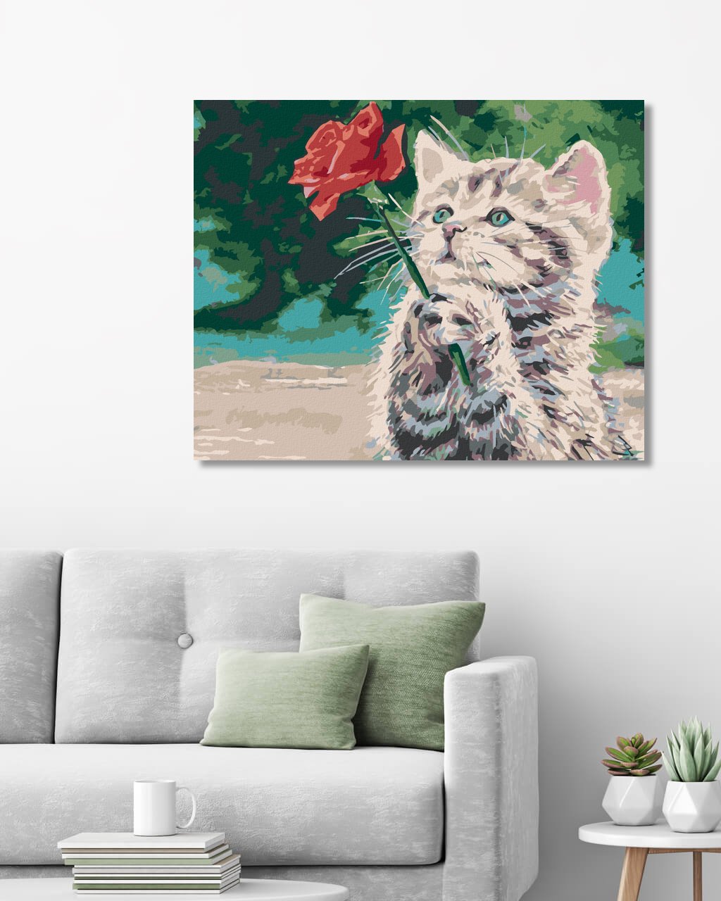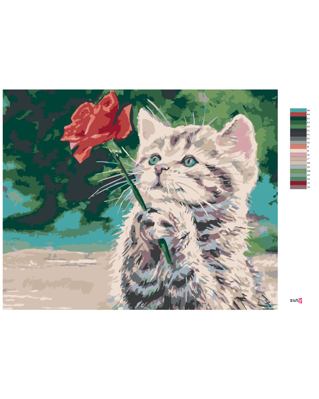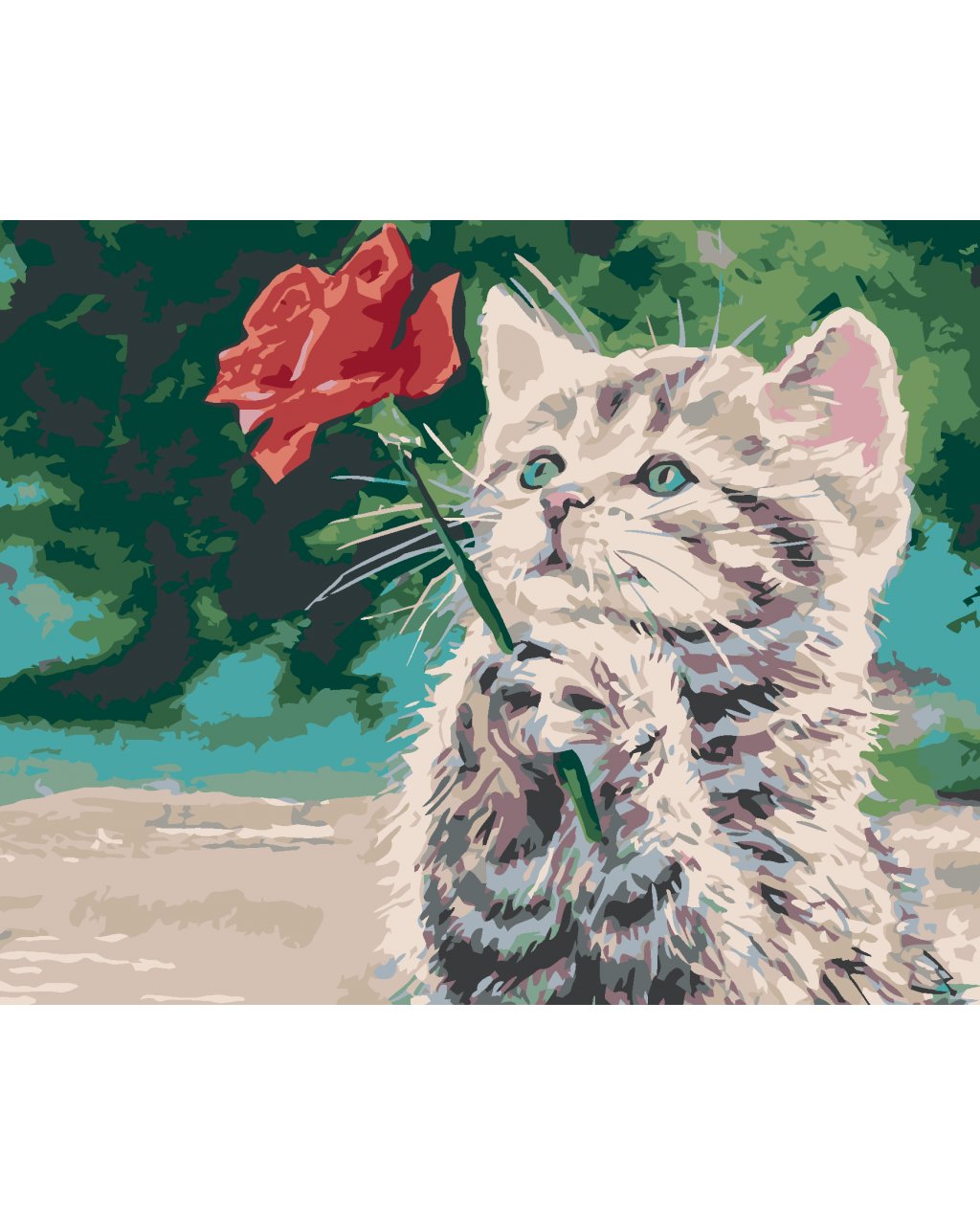 Maľovanie podľa čísel - MAČIATKO A ČERVENÁ RUŽA