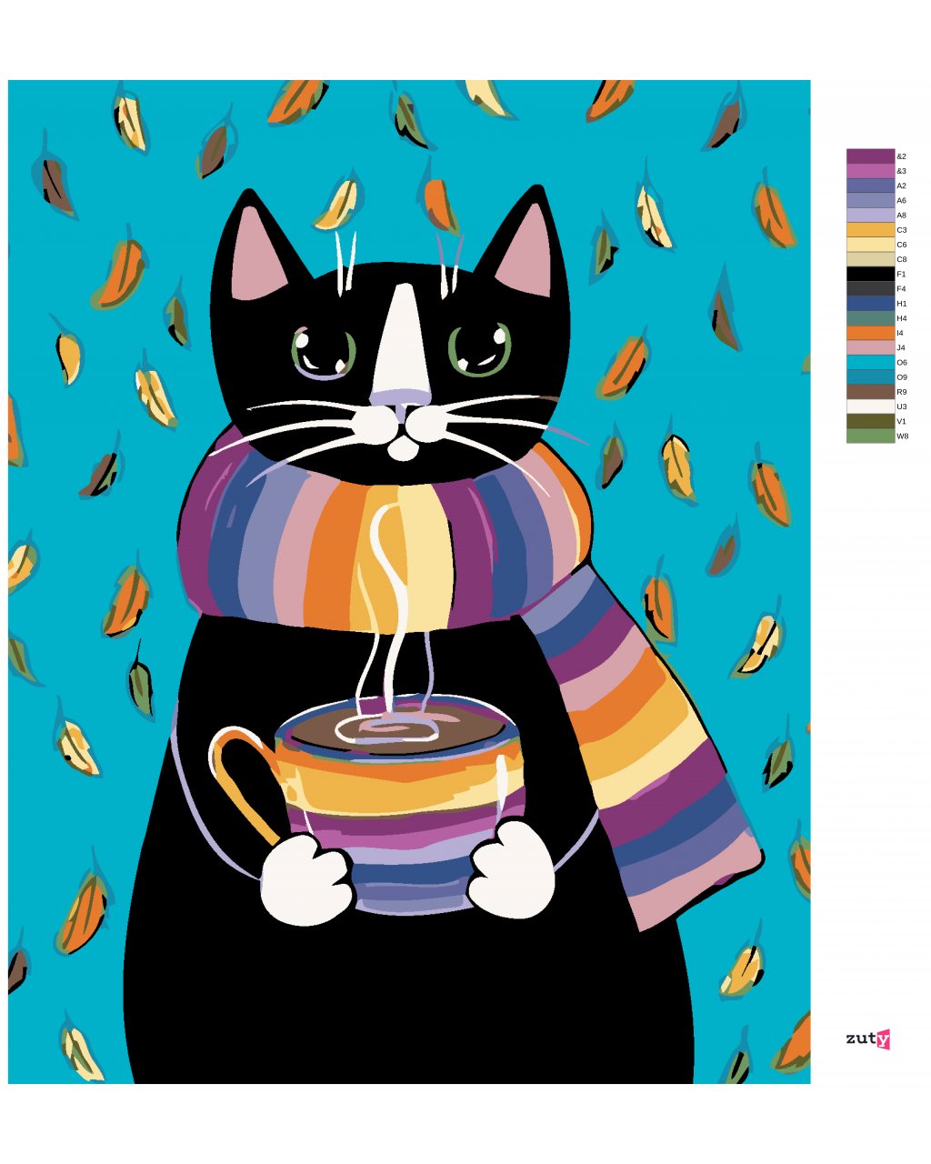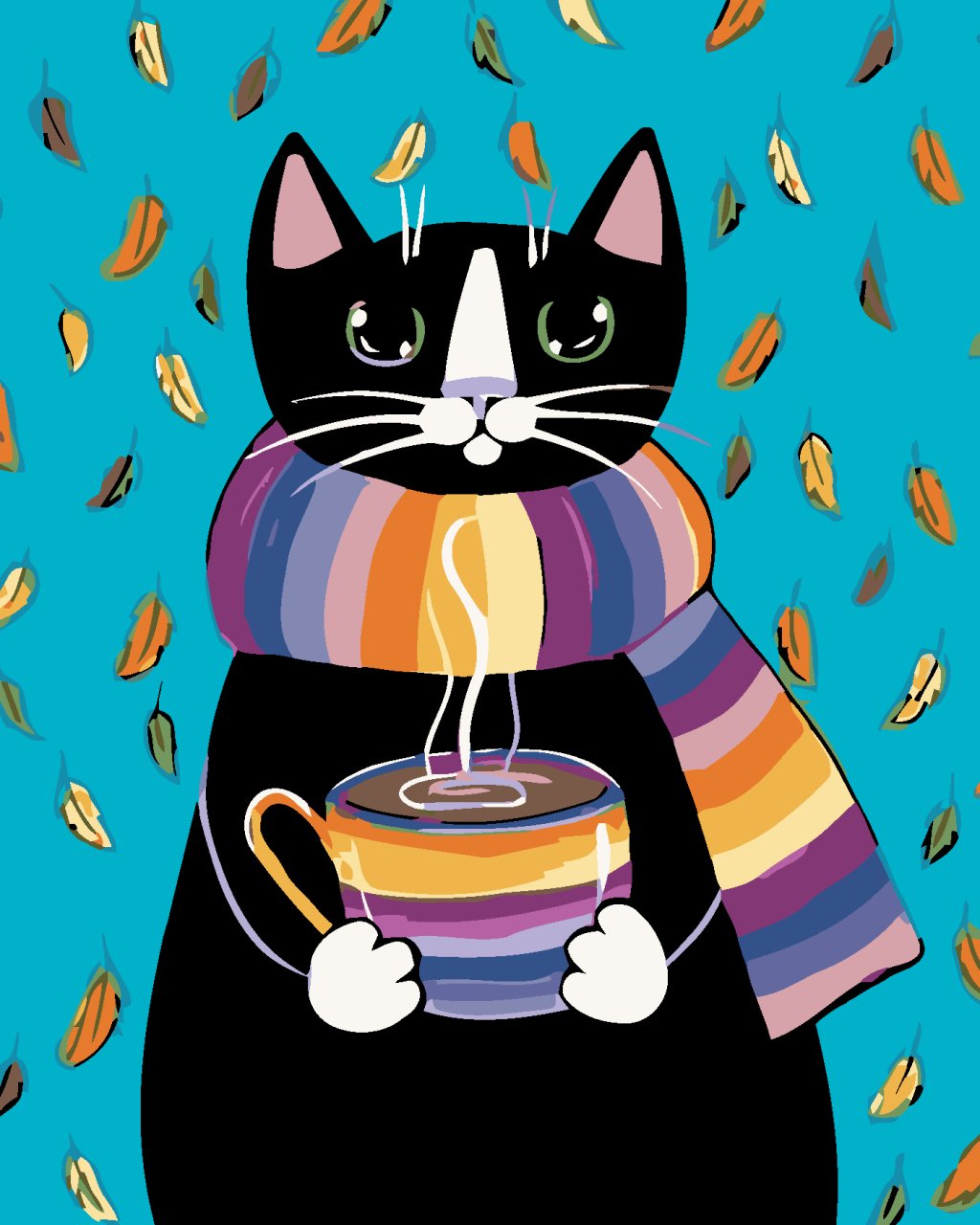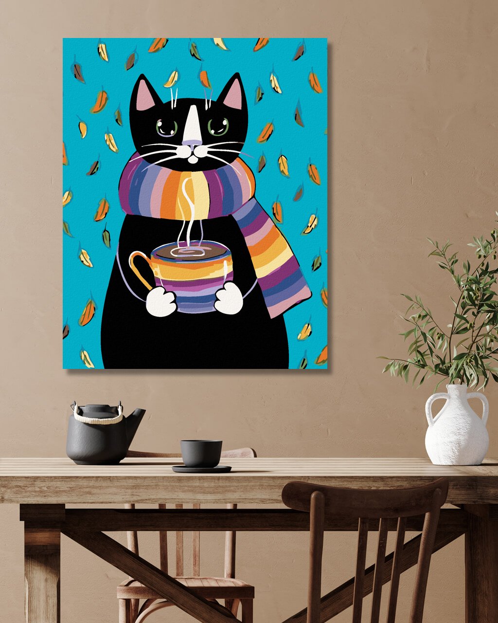 Maľovanie podľa čísel - MAČIČKA S PRUHOVANÝM ŠÁLOM