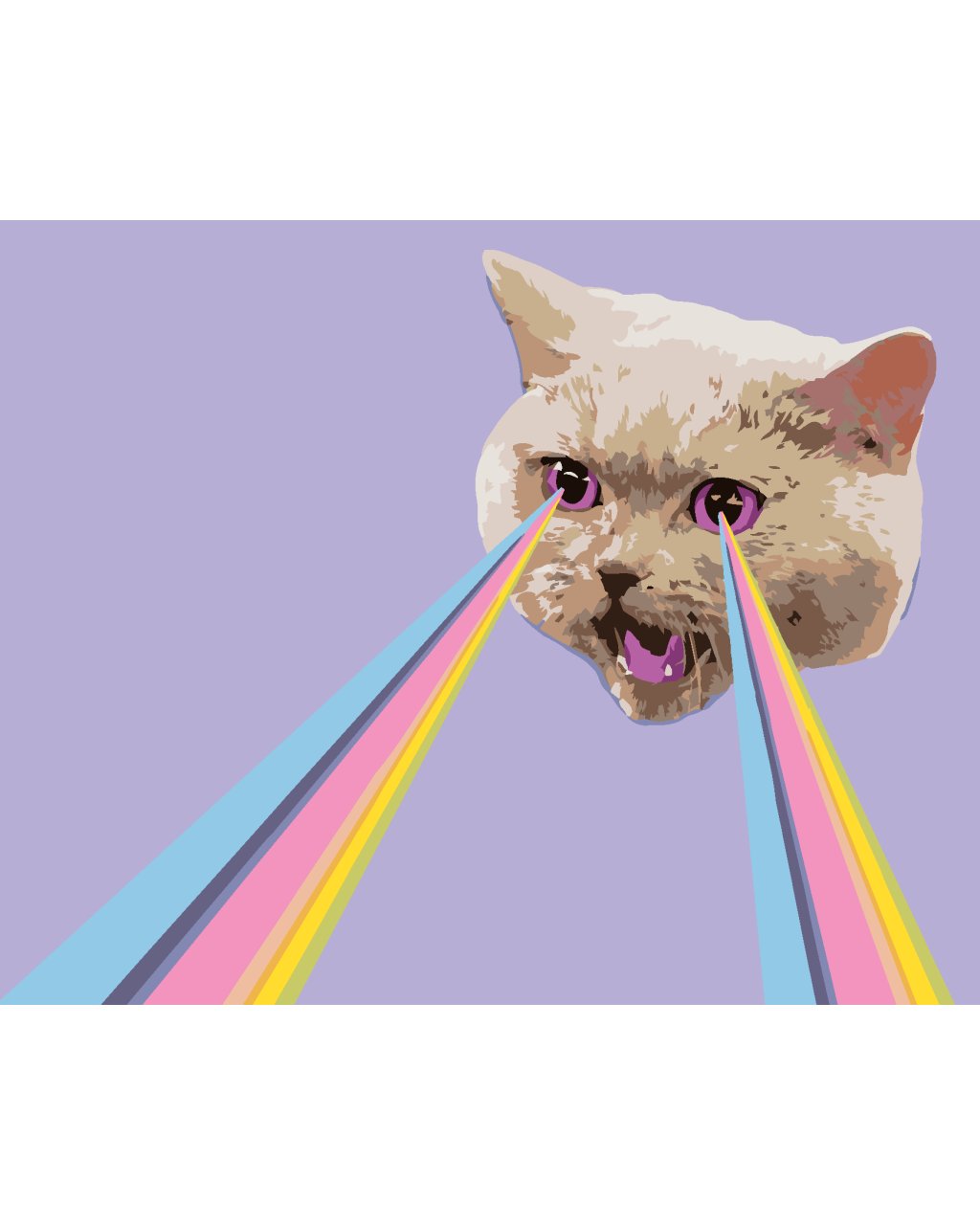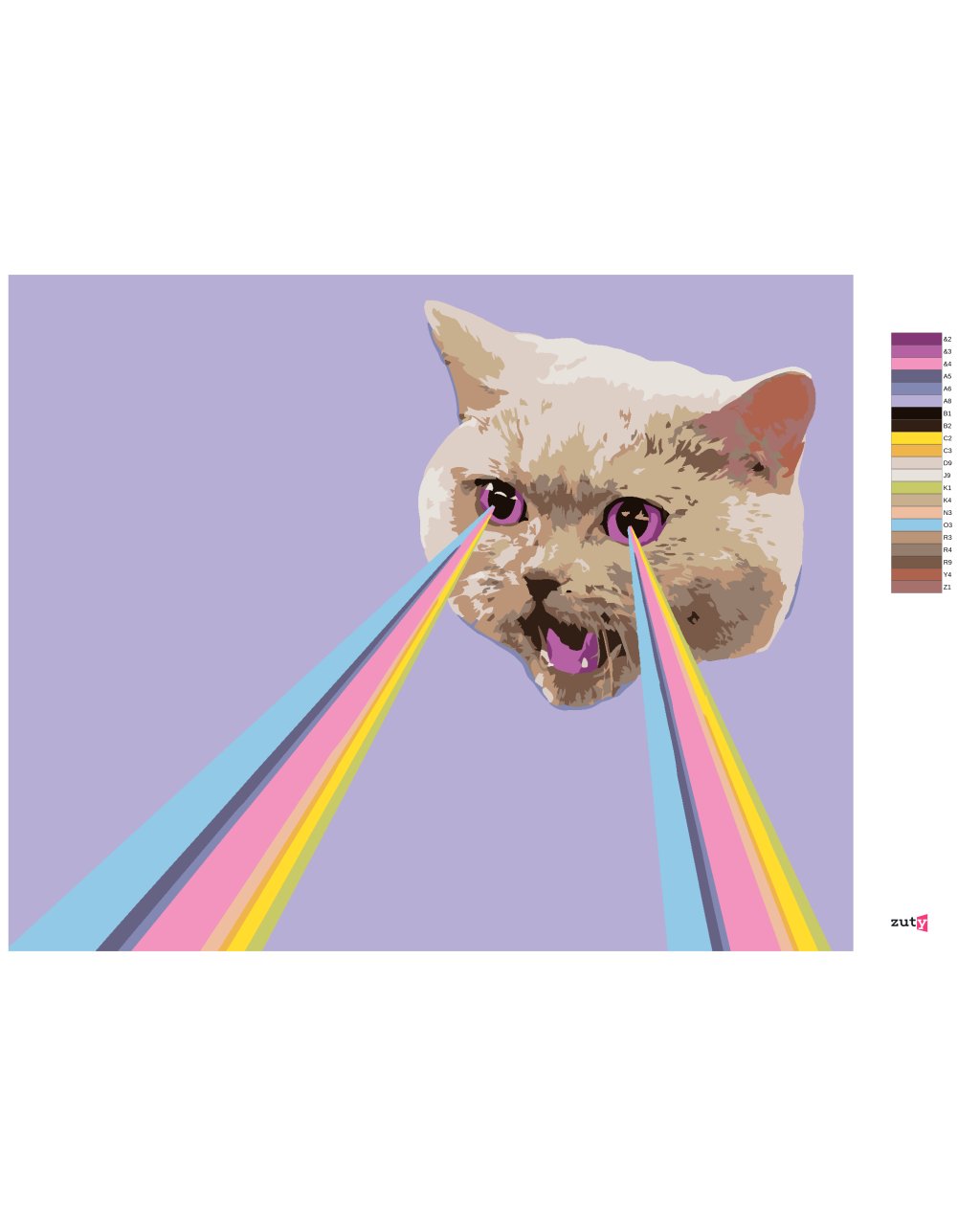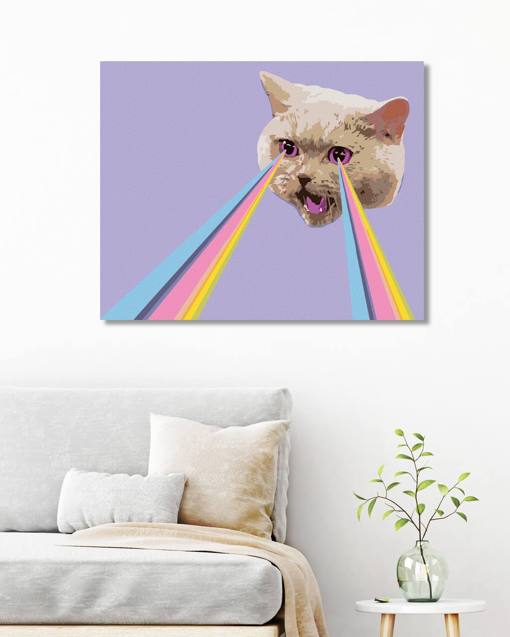Maľovanie podľa čísel - MAČKA A DÚHOVÉ LASERY