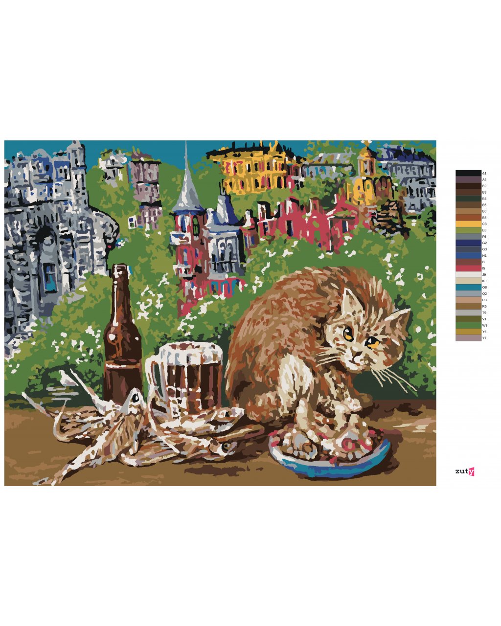 Maľovanie podľa čísel - MAČKA S JEDLOM NA STOLE