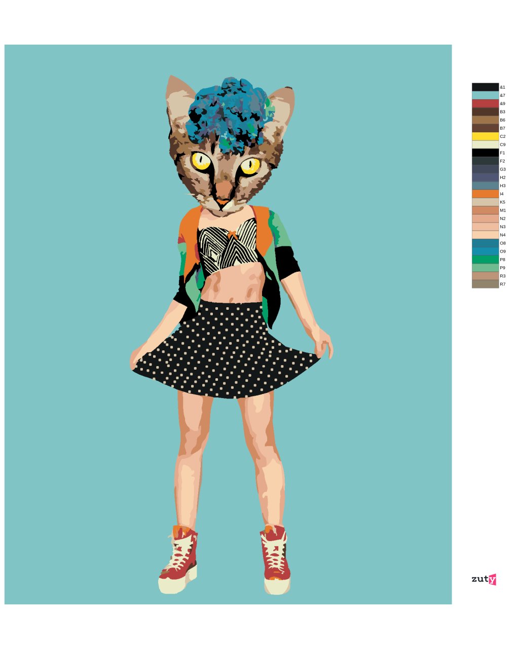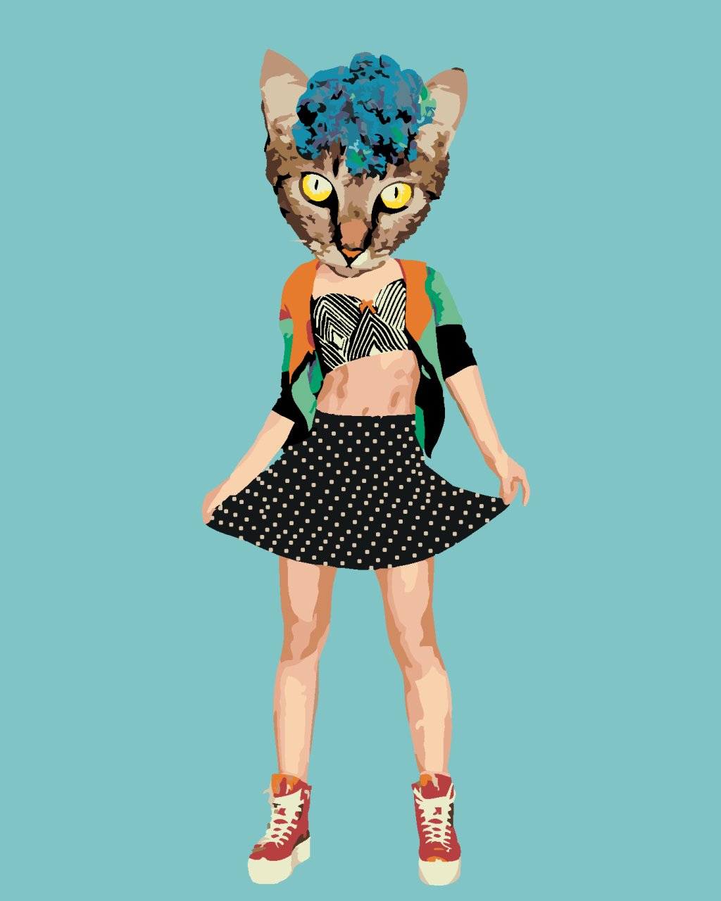 Maľovanie podľa čísel - MAČKA V OBLEČENÍ A KVETY