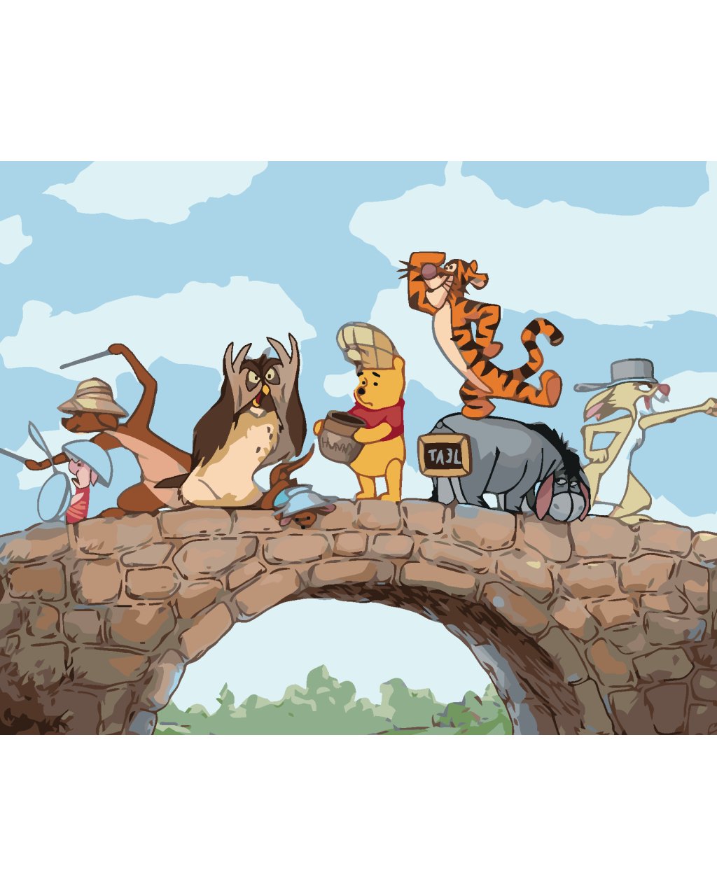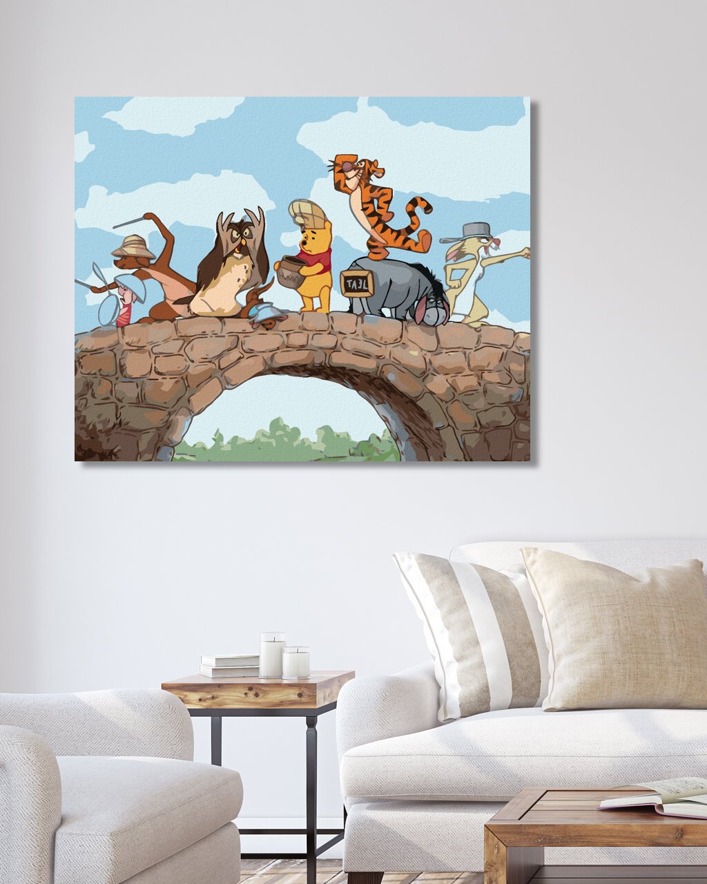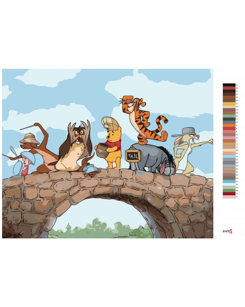 Maľovanie podľa čísel - MACKO PU A JEHO PRIATELIA NA MOSTE