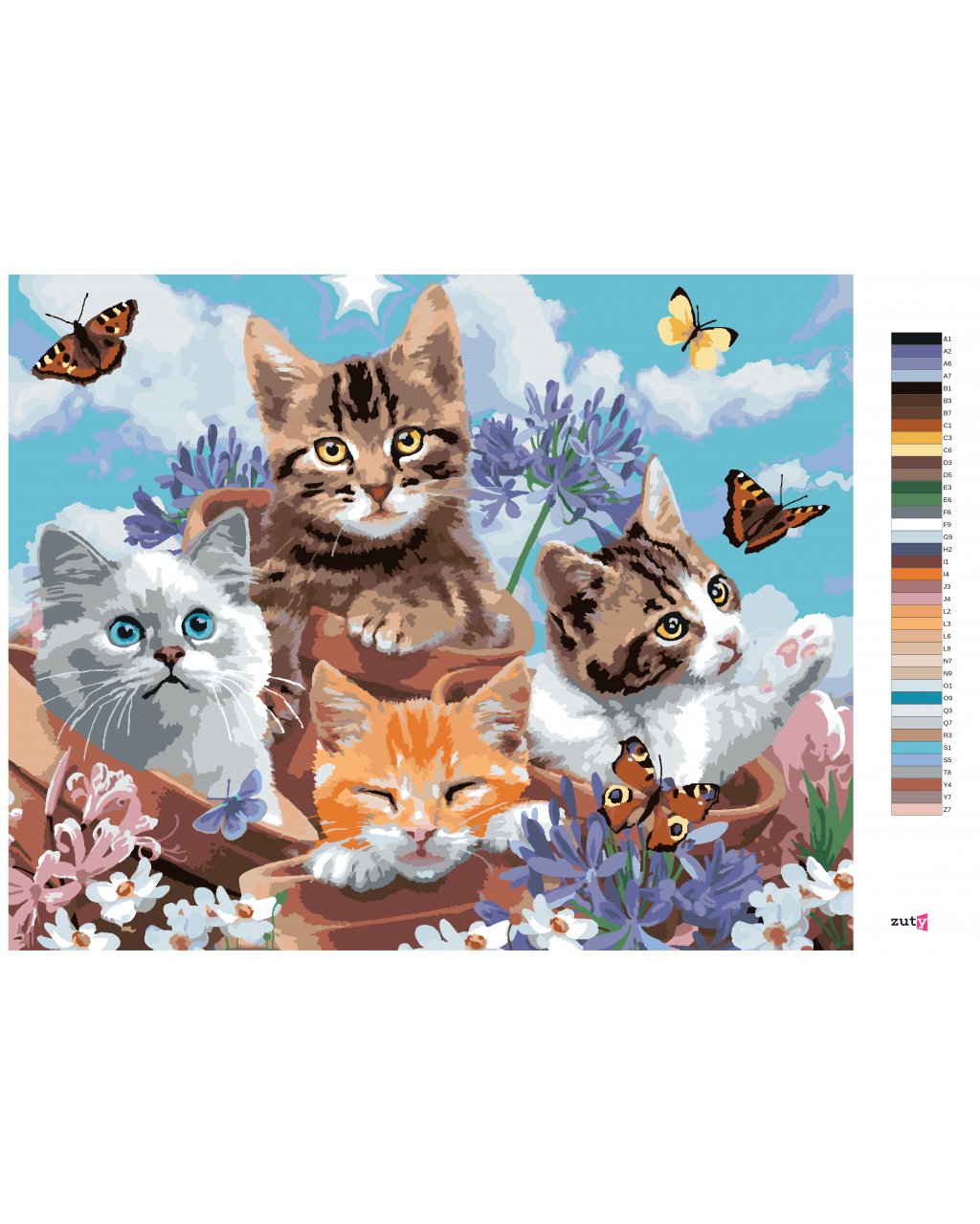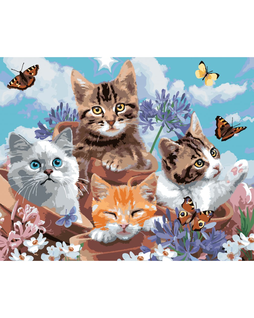 Maľovanie podľa čísel - MAČKY V KVETINÁČOCH A MOTÝLIKY (HOWARD ROBINSON)