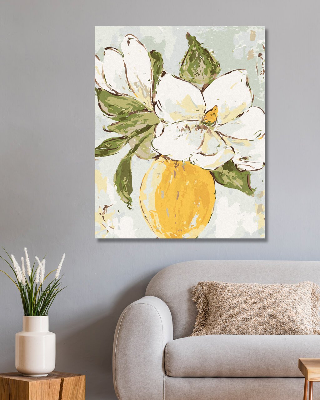 Maľovanie podľa čísel - MAGNÓLIA V ŽLTEJ VÁZE II (HALEY BUSH)
