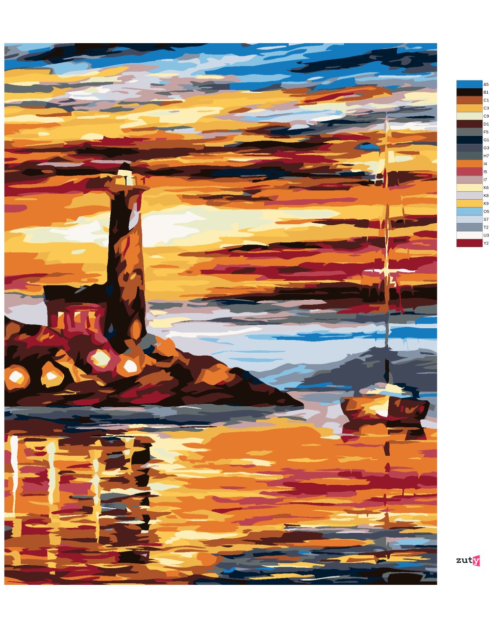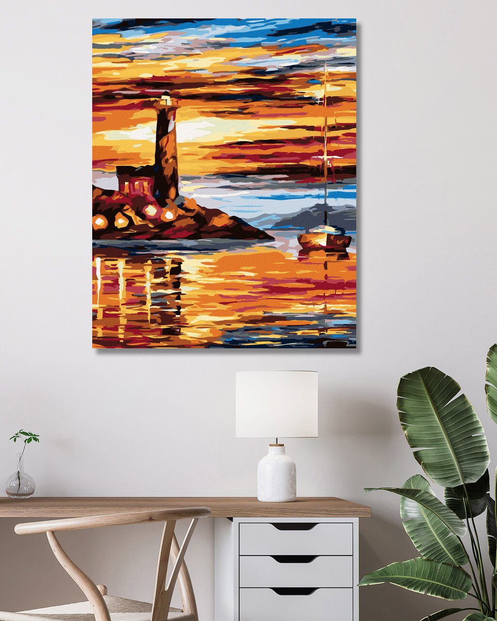 Maľovanie podľa čísel - MAJÁK A PLACHETNICE