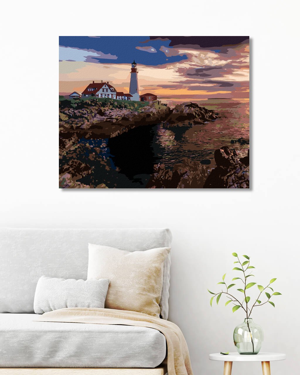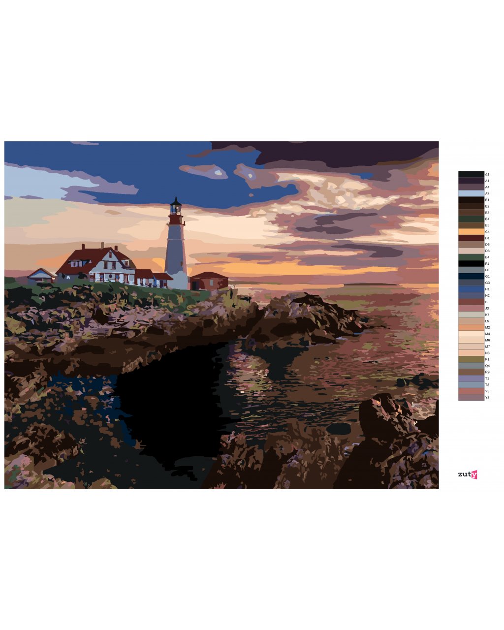 Maľovanie podľa čísel - MAJÁK A ZÁPAD SLNKA, USA (TED DAVIS)