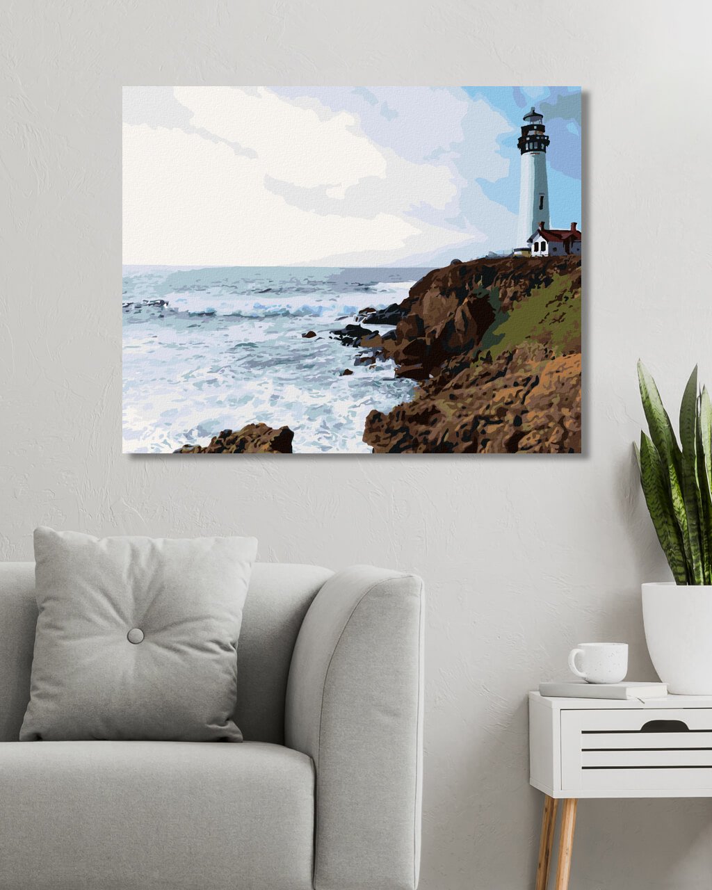Maľovanie podľa čísel - MAJÁK NA SKALE A VLNY