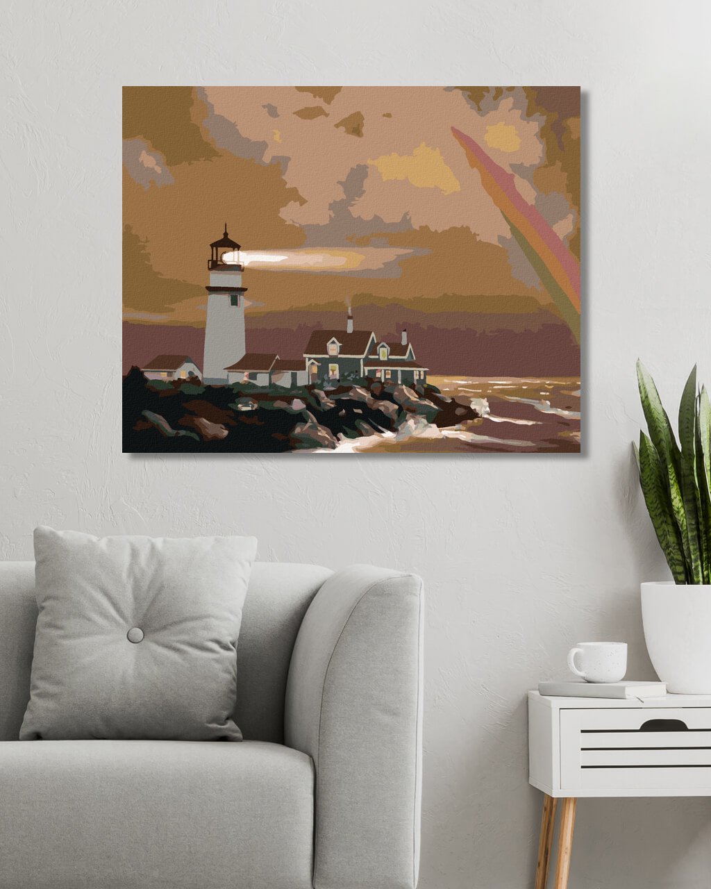 Maľovanie podľa čísel - MAJÁK NA VÝBEŽKU NA HNEDOM POZADÍ (D. RUSTY RUST)