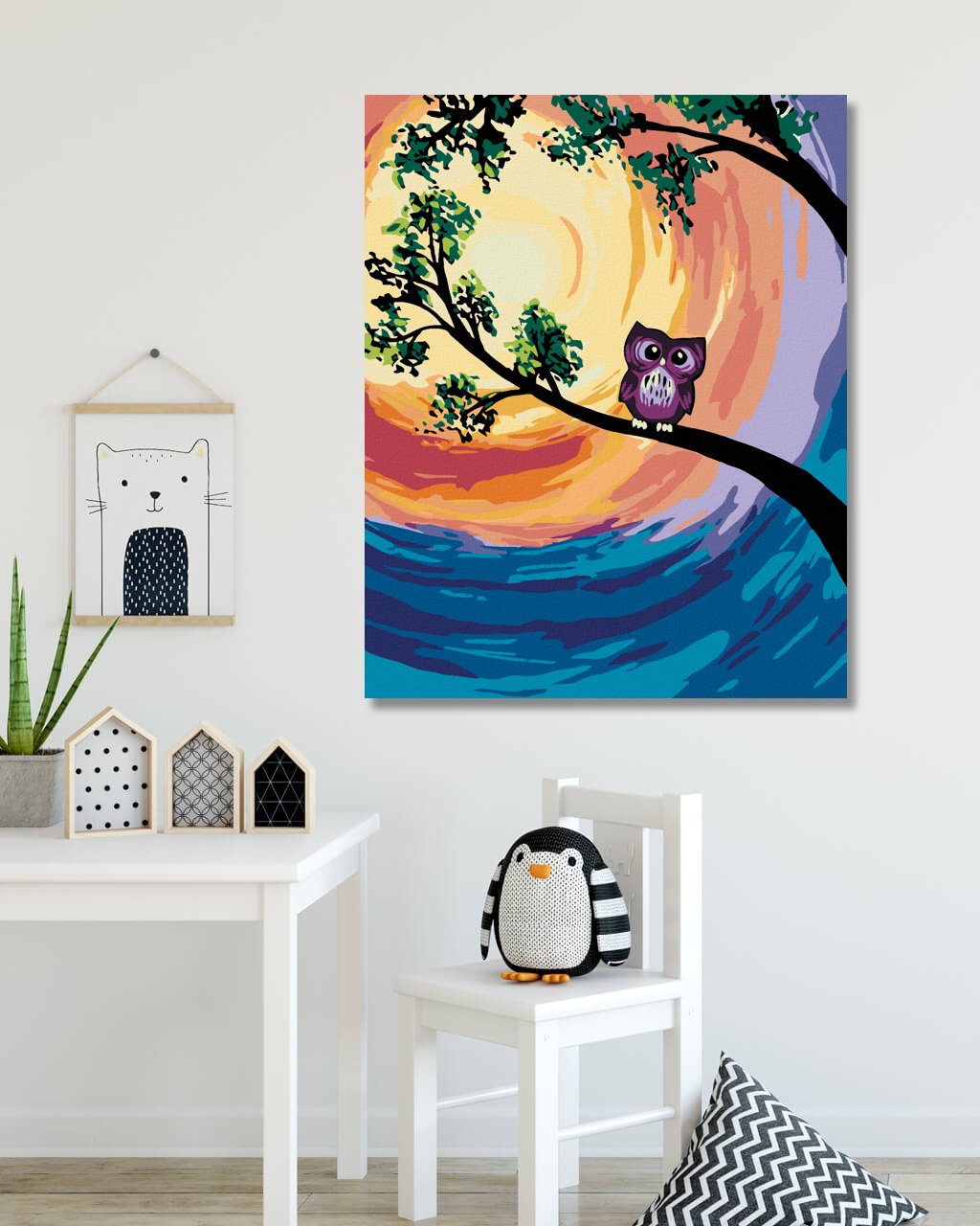 Maľovanie podľa čísel - MALÁ FIALKOVÁ SOVIČKA