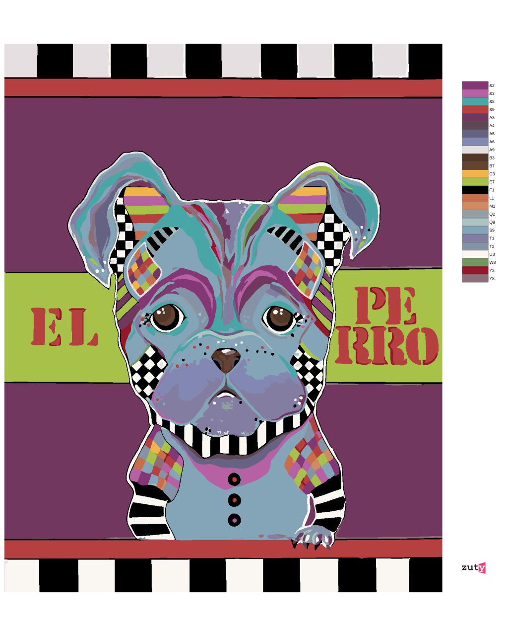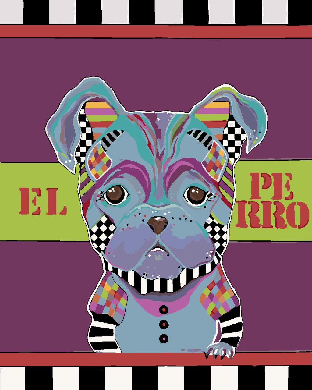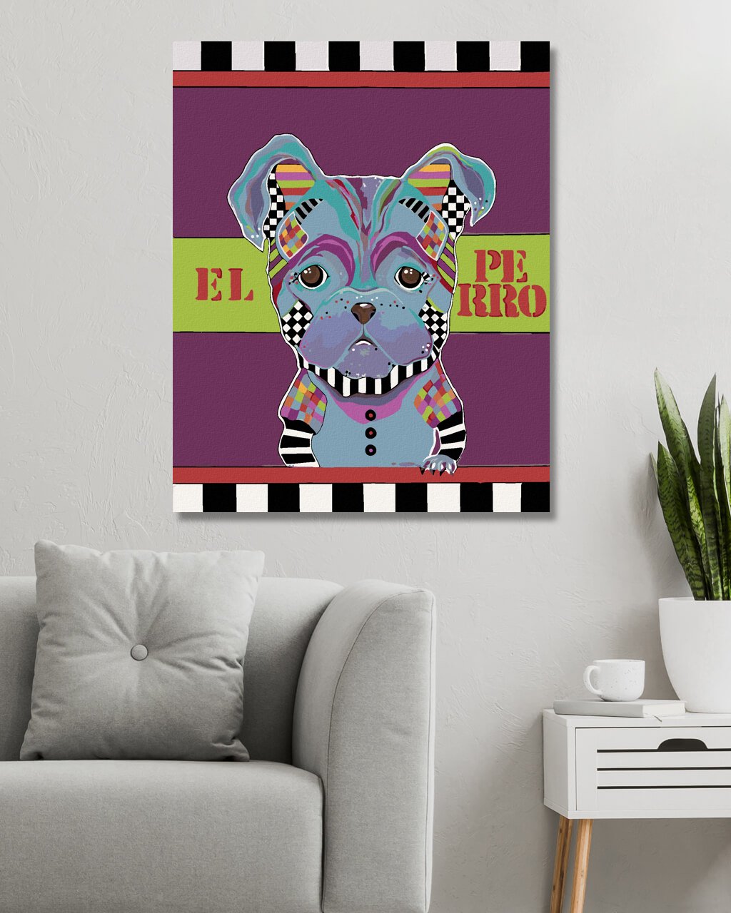 Maľovanie podľa čísel - MALÝ PES NA FIALOVOM POZADÍ (JONNA JAMES)