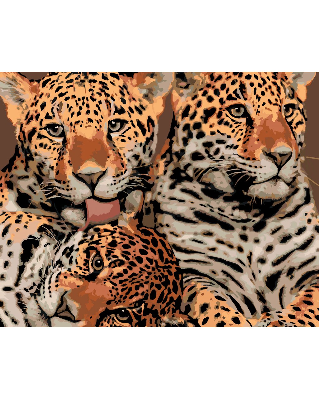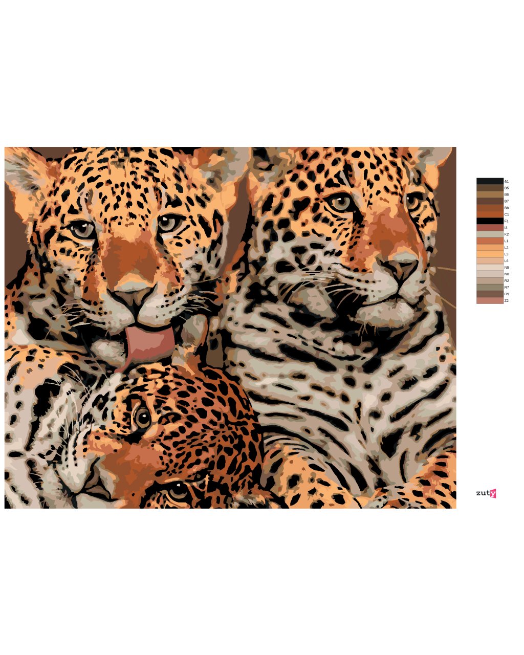 Maľovanie podľa čísel - MATKA JAGUÁRA A DVE MLÁĎATÁ